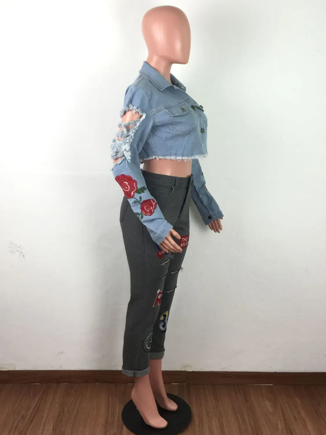 | Product Name | Autumn And Winter Women’s Retro Trendy Fashion Embroidered Ripped Denim Pants |