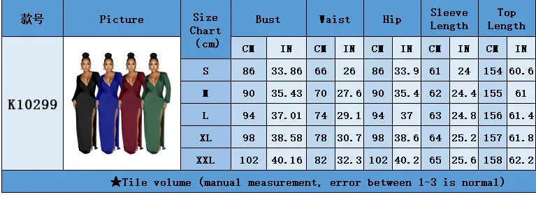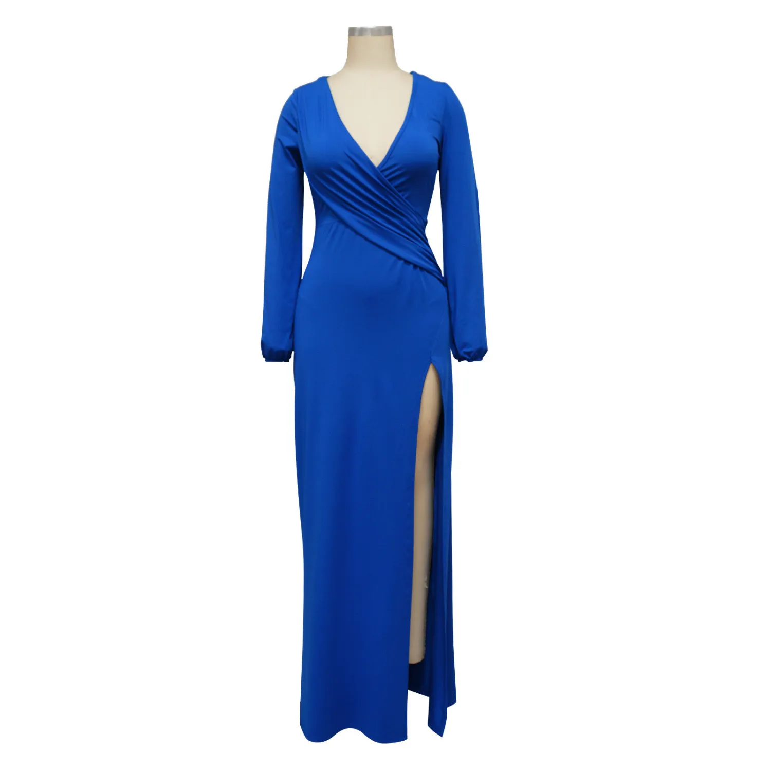 | Product Name | Autumn Long Sleeve V-Neck Solid Color Sexy Slit Long Dress |