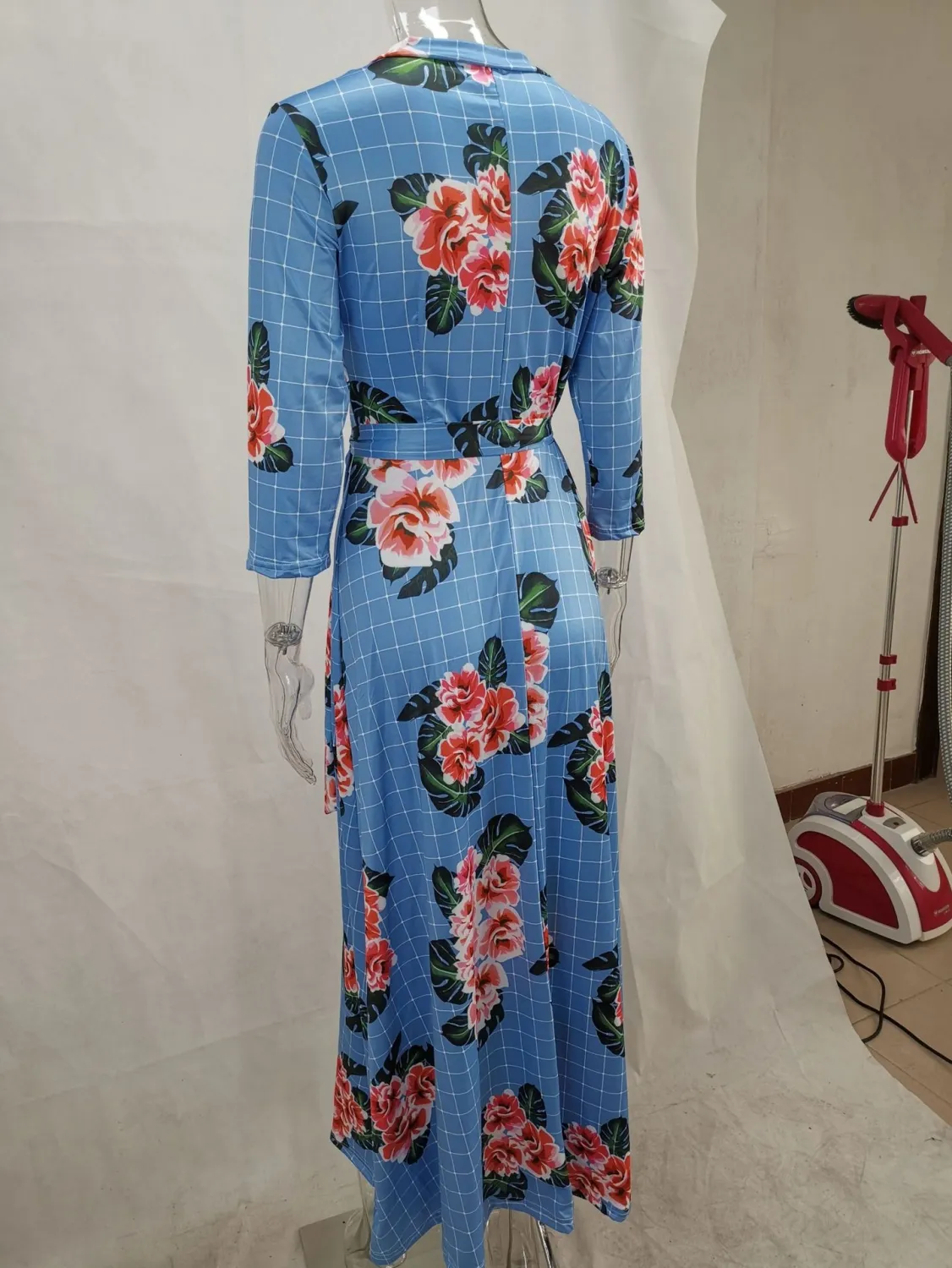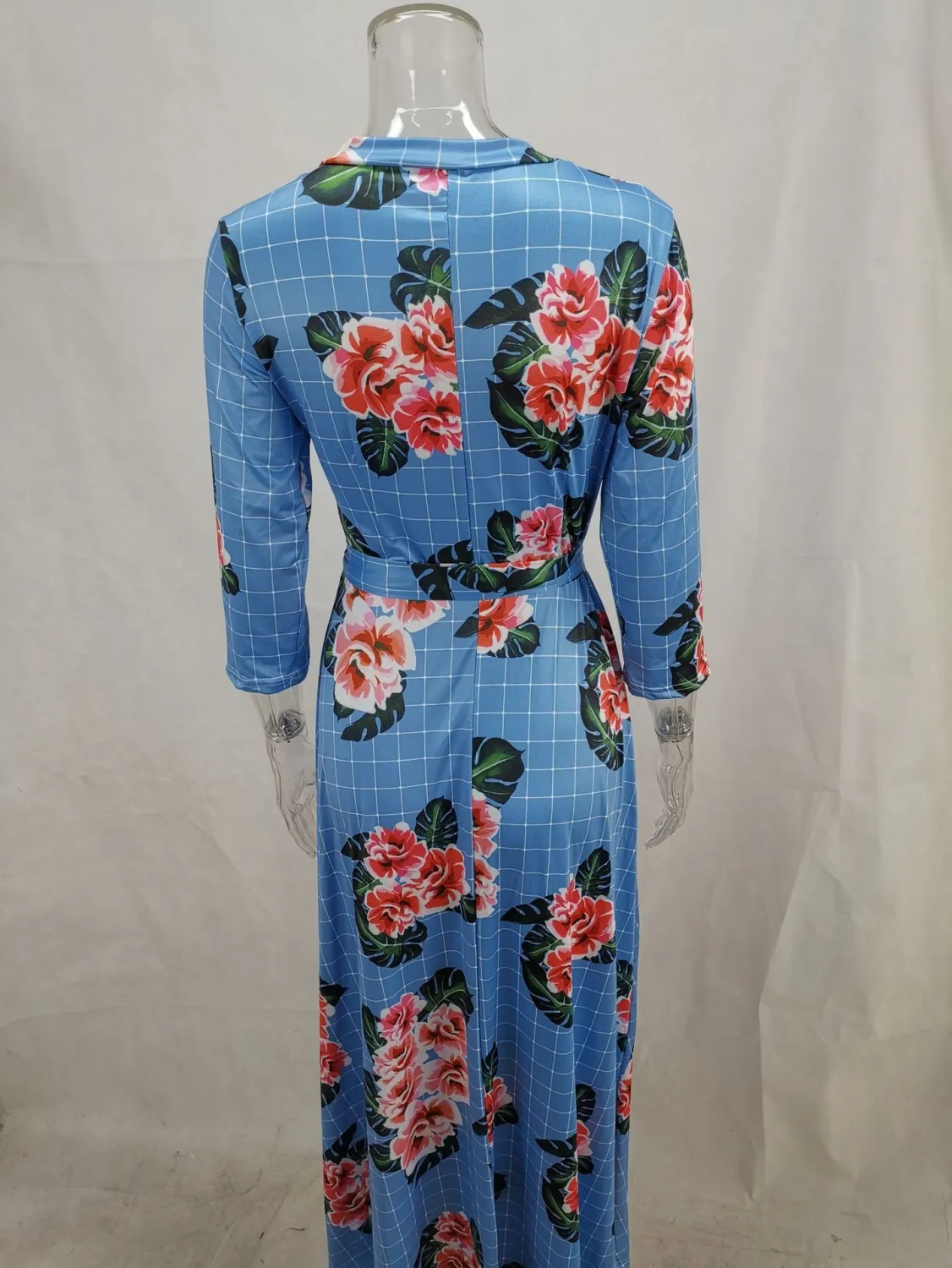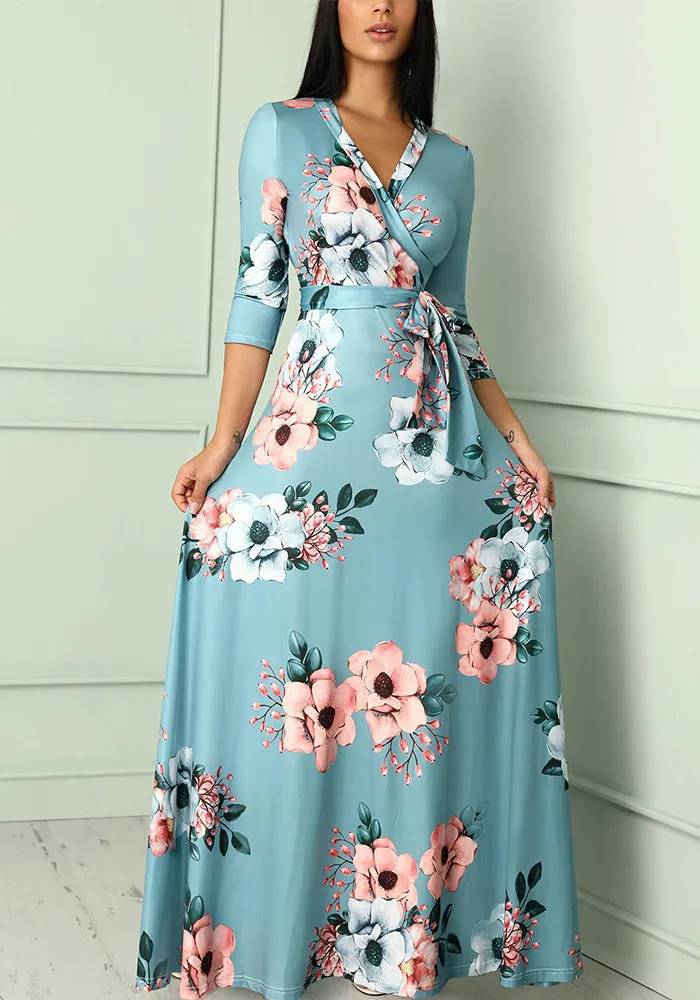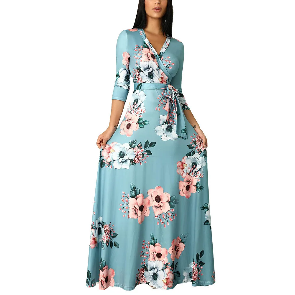 | Product Name | Autumn Three Quarter Sleeve Floral Printed Women’s V Neck Maxi Dress |