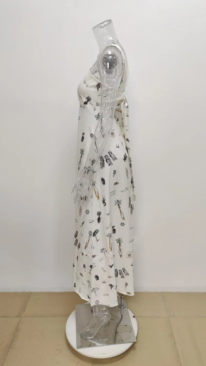 | Product Name | Bow Lace-Up Summer Women’s Printed Strap Casual Long Dress |
