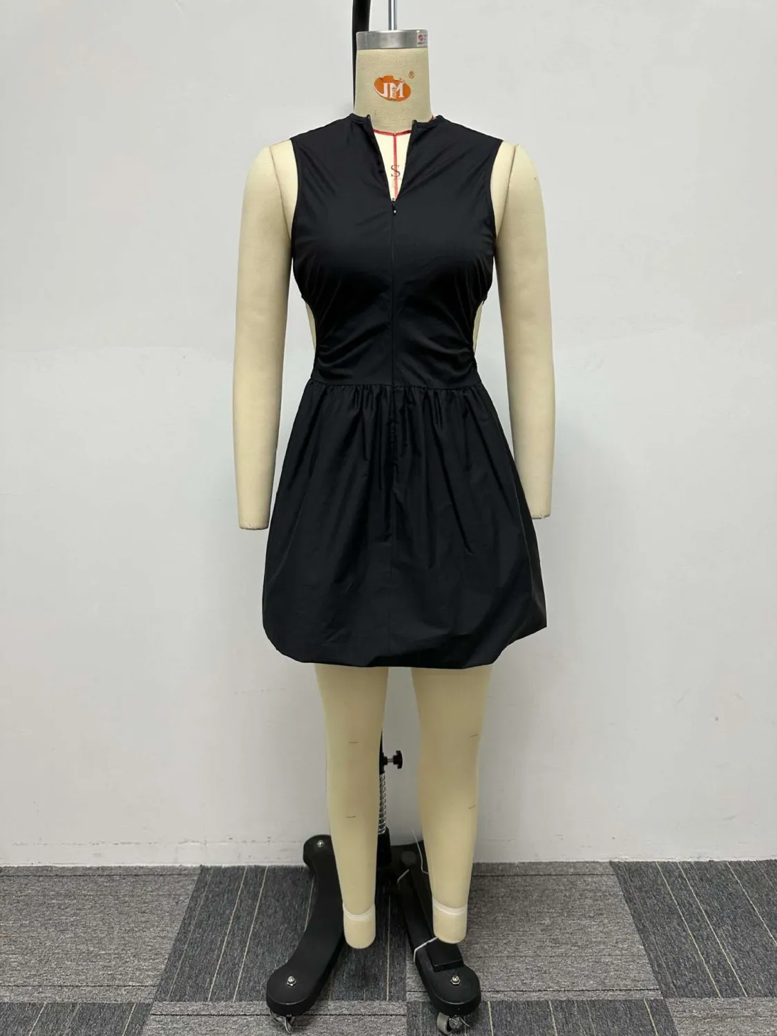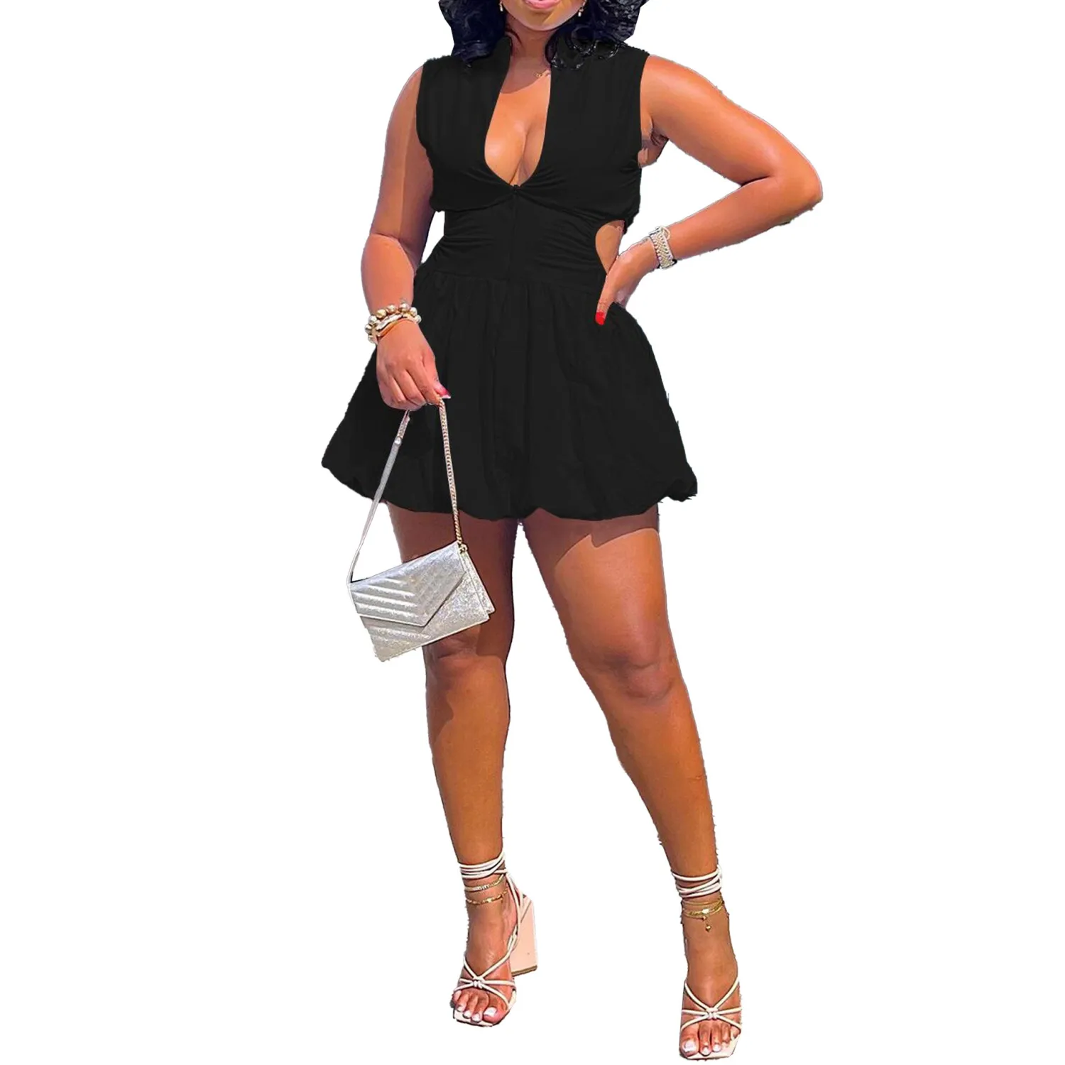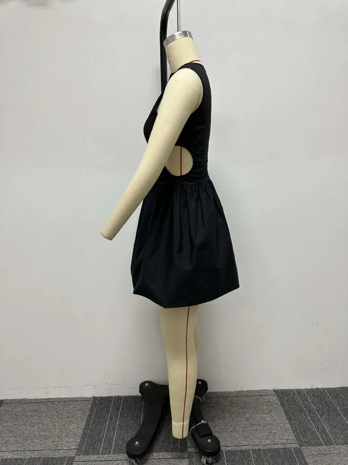 | Product Name | Casual Fashion Solid Color Slim Waist Cutout Puffy V-Neck Dress |