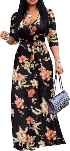 This Casual Fashionable Flower Print v-Neck Half-Sleeve Swing Long Dress Design Made Of High Quality Polyster And Spandex Material, Which Is Stretchy, Soft And Comfortable. The Is Always On Trend. This Casual Maxi Dresses Is a Must-Have For Vocations And Dating Occasions. Maxi Dresses At Global Lover Comes With Huge Selections Of Colors, Sizes, Material, And Designs. When You Need Wholesale Cheap Maxi Dresses, You Can Always Find Vary Collection And No Moq On Our Wholesale Women Fashion Online Store.