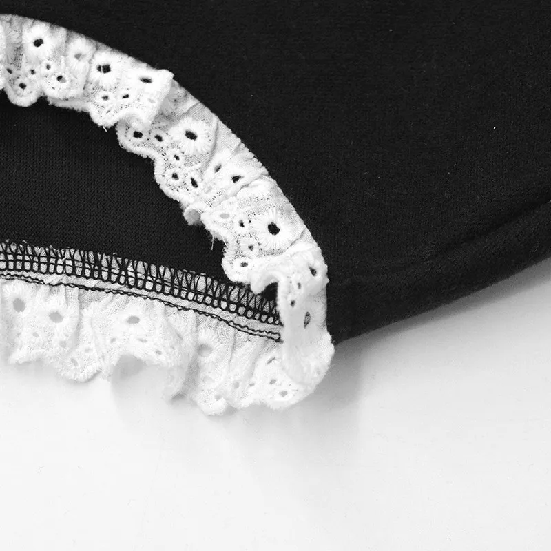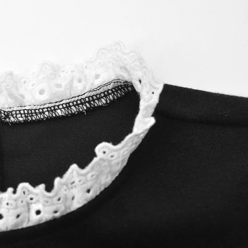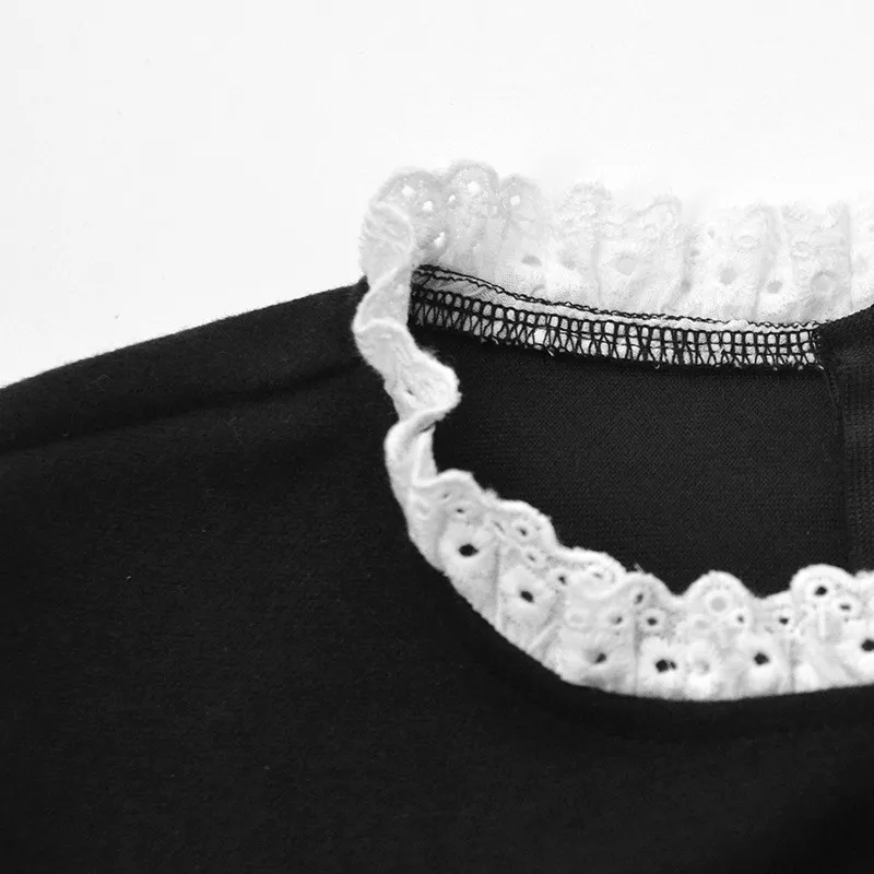 | Product Name | Chic Slim Contrast Color Ruffle Edge Long Sleeve A-Line Black Dress |