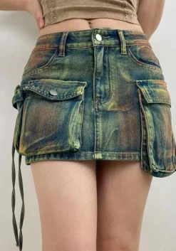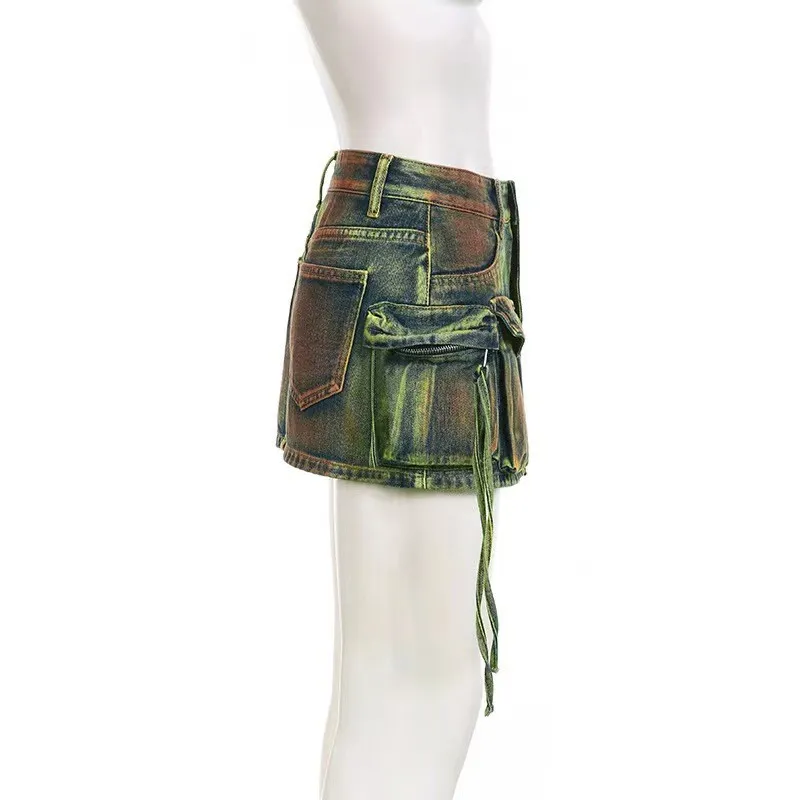 | Product Name | Distressed Multi-Pocket High-Waist Denim Mini Skirt Asymmetrical Leg-Length A-Line Skirt |