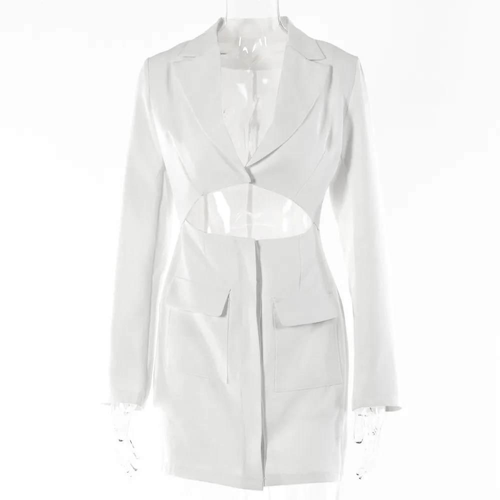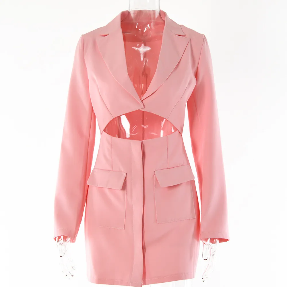| Product Name | Dress Women’S Solid Long Sleeve Cutout Turndown Collar Long Sleeve Blazer Dress |