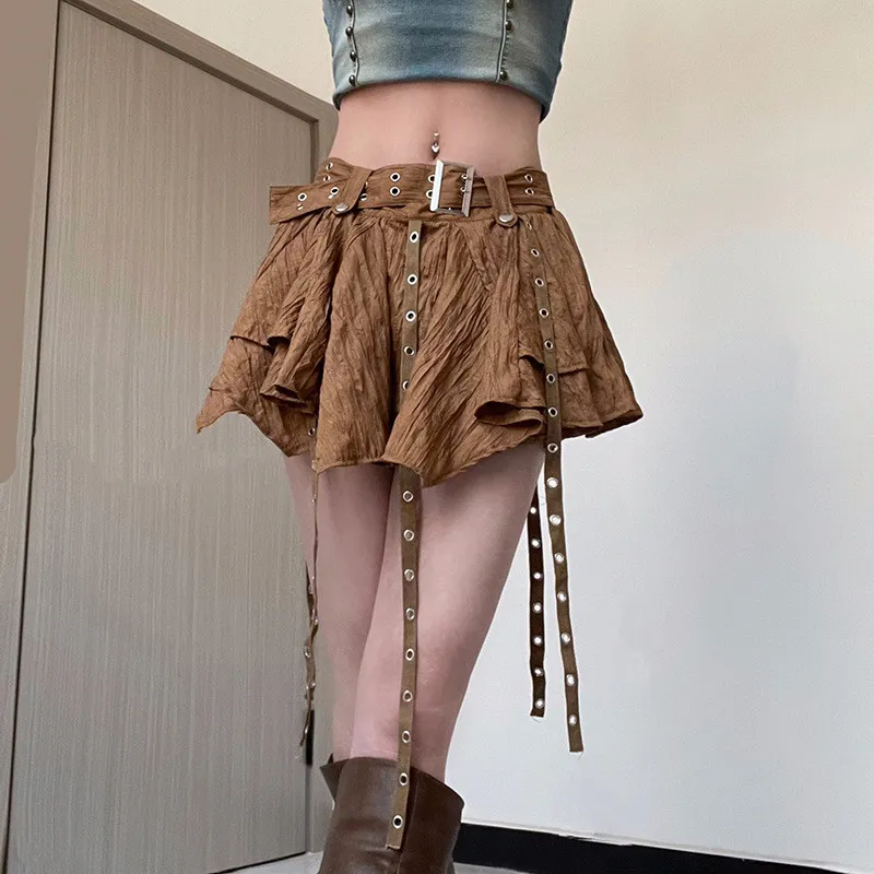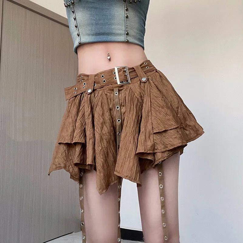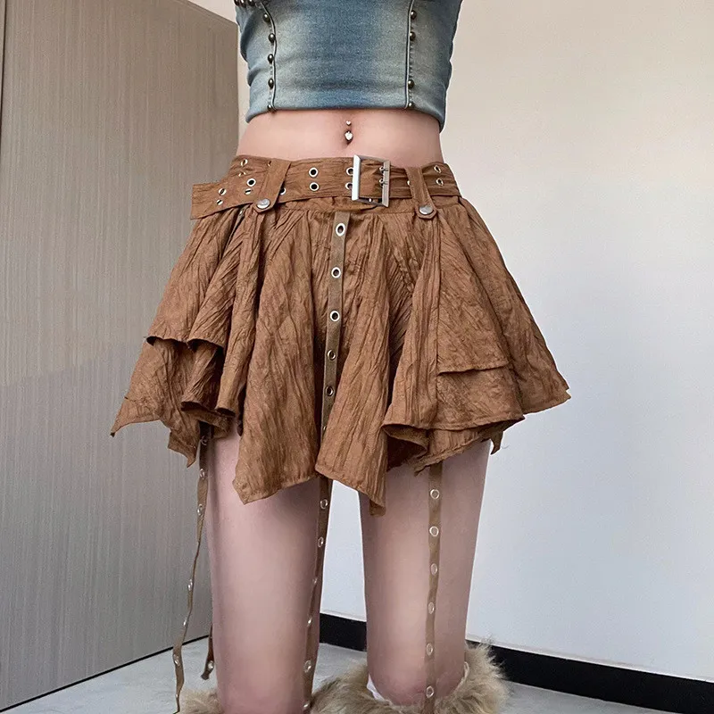 | Product Name | Fashion Low-Waist Metal Buckle Belt Irregular Ribbon Skirt |