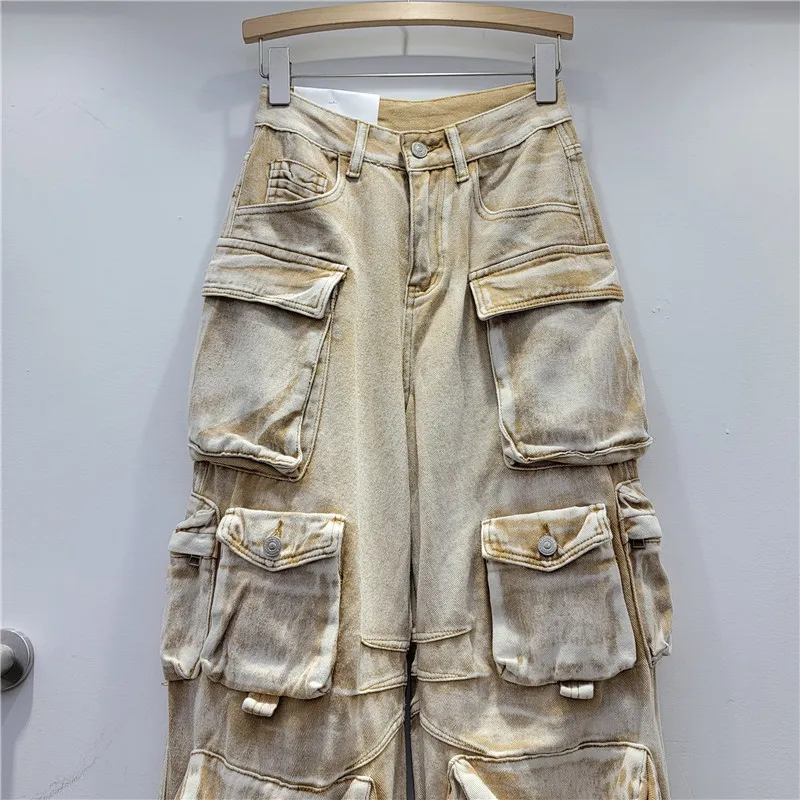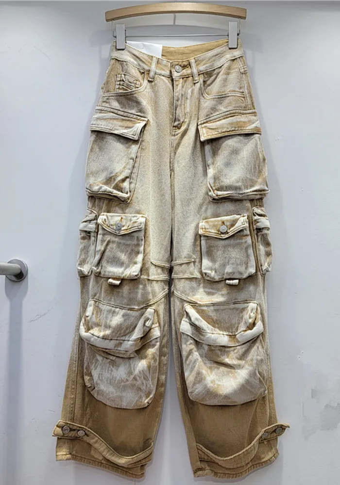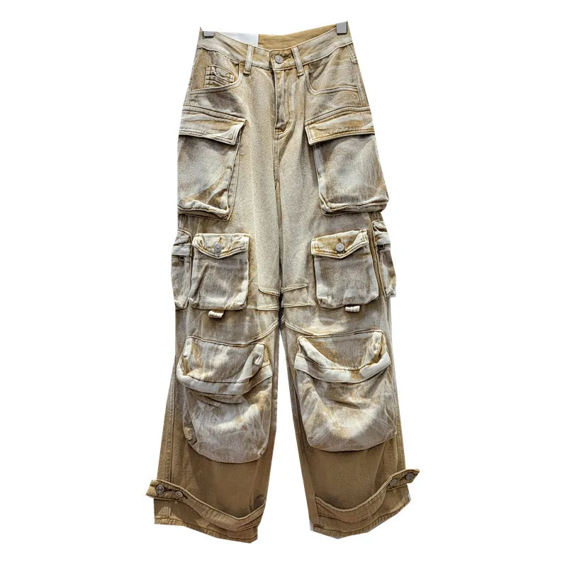 | Product Name | High Street Fashion Gradient Contrast Color Pocket Wide Leg Cargo Denim Women’s Trendy Pants |
