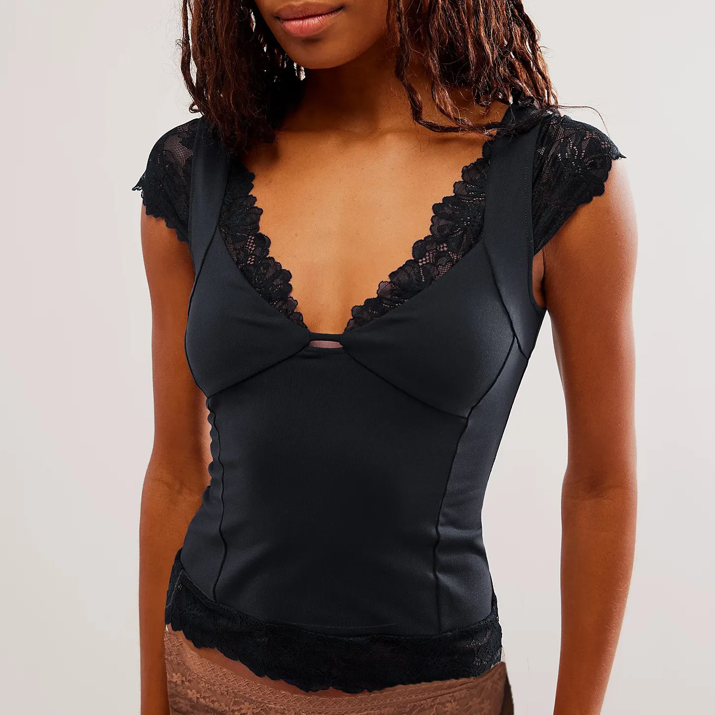 | Product Name | Lace Trim Short-Sleeved Deep V Neck Sexy T-Shirt Top |