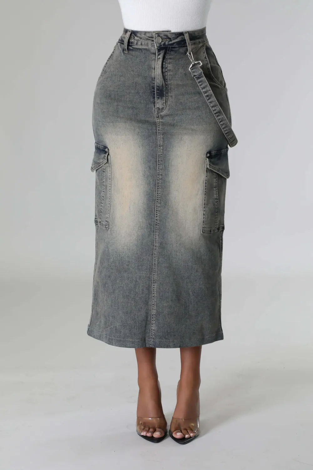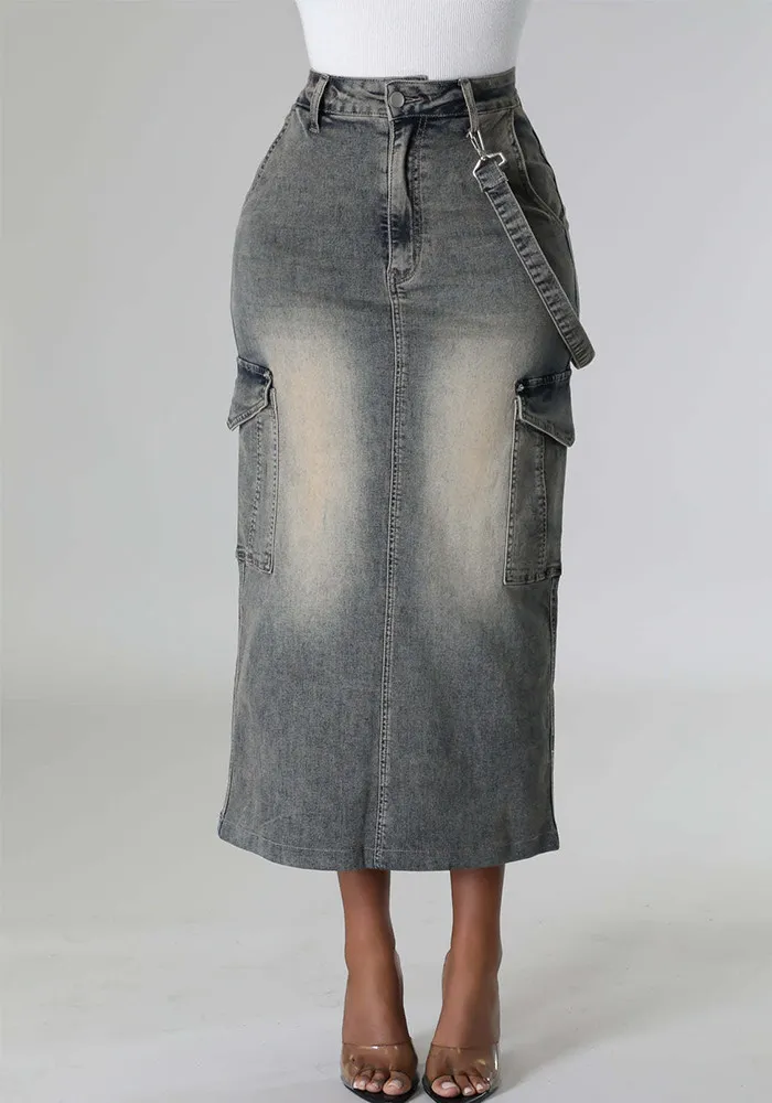 | Product Name | Pocket Stretch Denim Long Skirt |