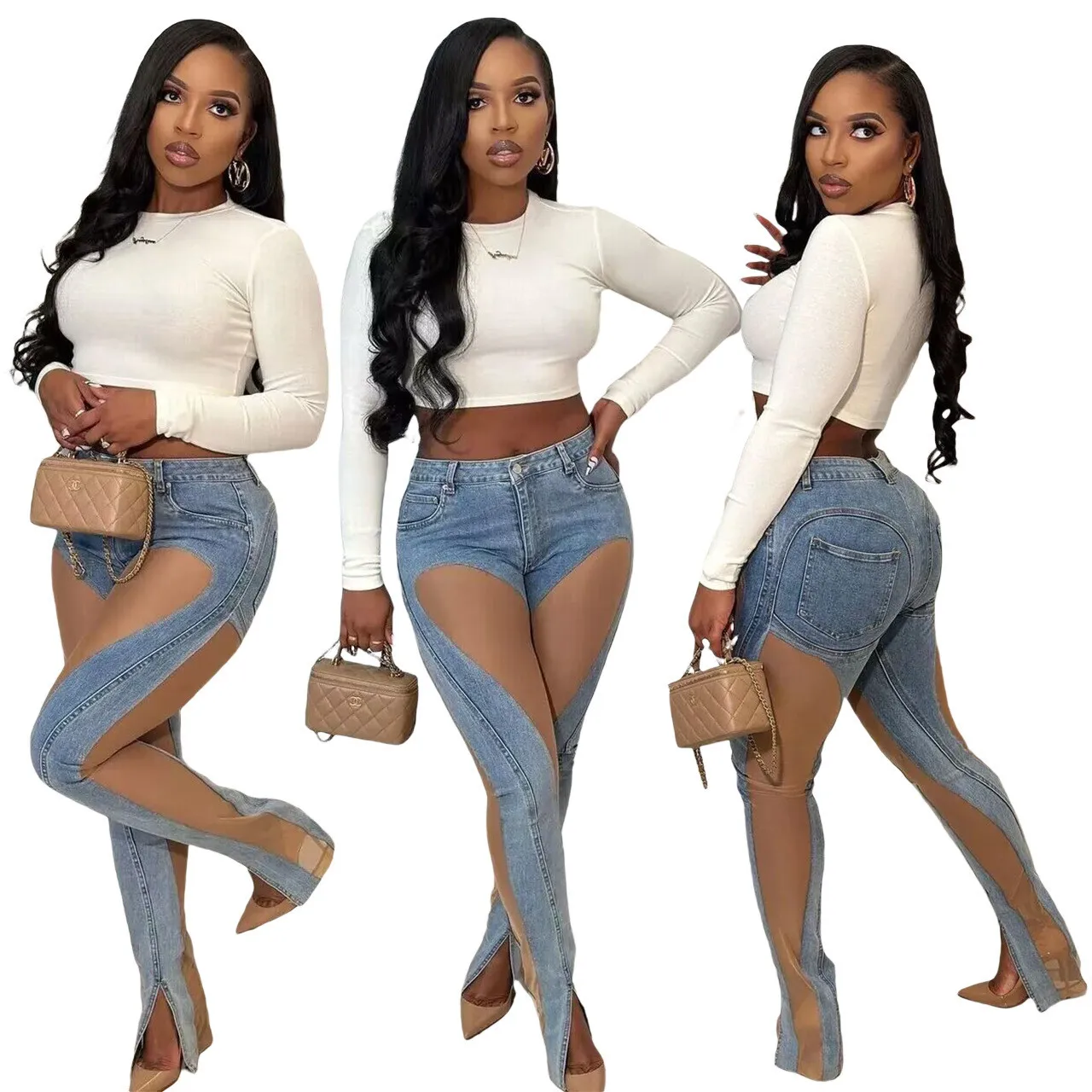 This See-Through Mesh Patchwork Slit Stretch Fit Butt Lift Denim Pants Design Made Of Durable And Stretchy Jeans Fabric. It Is a Must-Have Item For Daily Life. Trendy Wholesale Jeans Is a Indispensable Item For Everyday Fashion. Women’s Jeans With High Waist Is a Must Have Trousers That Lengthening Your Leg Lines And Tightening The Excess Flesh Of Your Waist. Grab a Must Have High Waist Jeans Wholesale For Your Closet, Just Choose Different Matching Tops To Control Every Occasion Easily.
