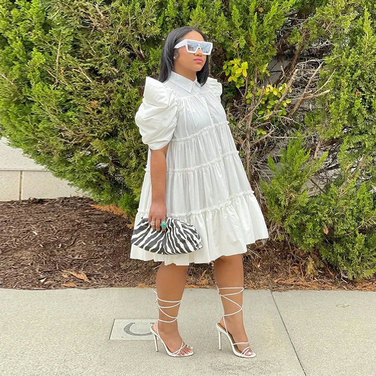 | Product Name | Spring/Summer Retro Court Style Pleated Puff Sleeve Loose Women Dress |