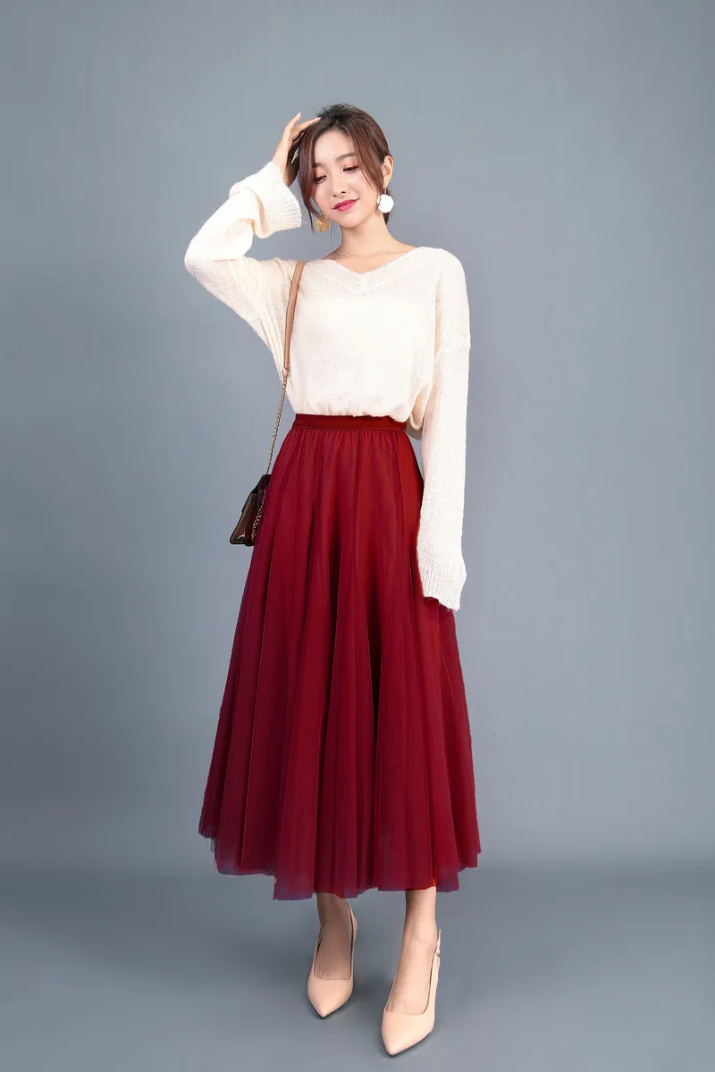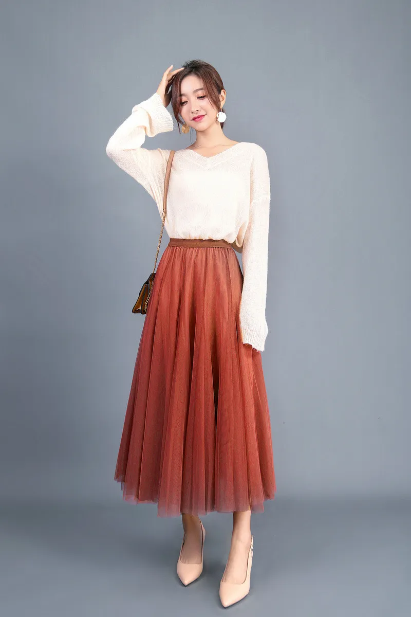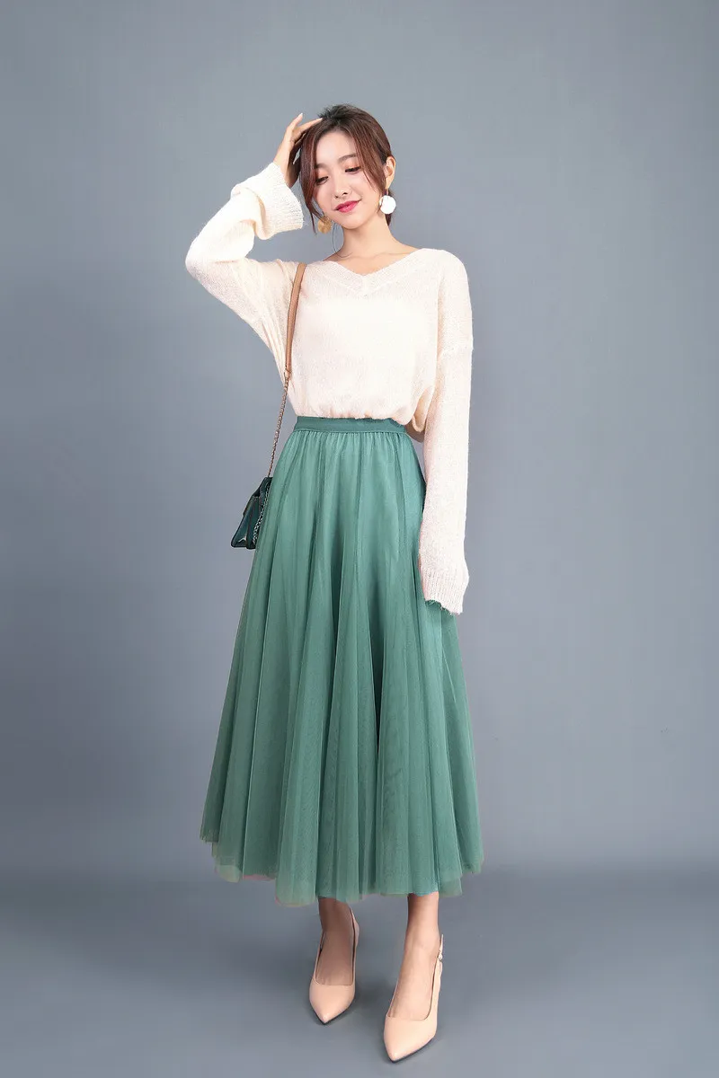 | Product Name | Spring Swing Puffy High Waist Slim Mesh A-line Long Skirt |