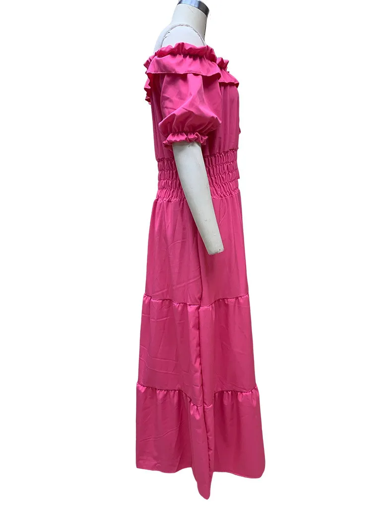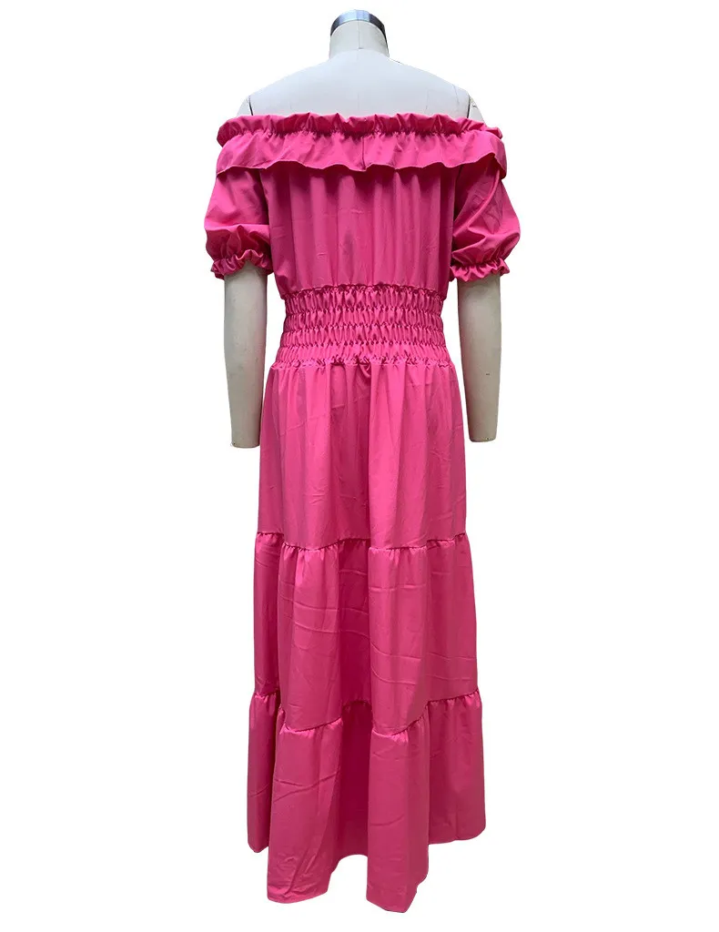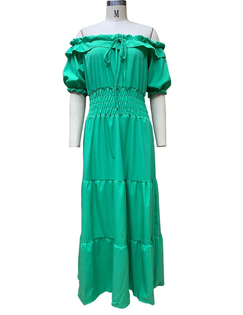 | Product Name | Spring Women’s Fashion Chic Off Shoulder Short Sleeve A-Line Long Dress |