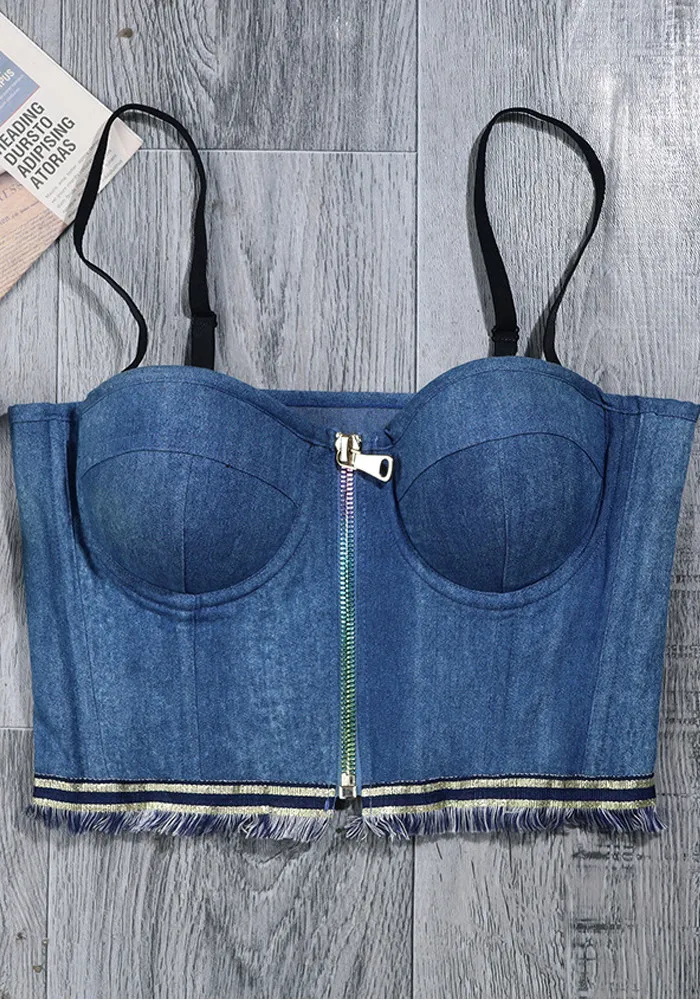 | Product Name | Street Outdoor Wear Suspenders Low Back Stretch Denim Zip Camisole Sexy Shapewear |