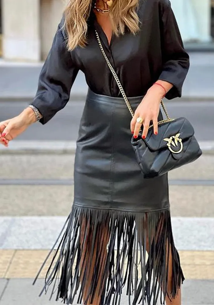 This Street Trend Fall/Winter Tassel Patchwork Leather Skirt And Made Of Polyster And Spandex Material. It Is a Must-Have Item For Everyday Life. Skirts Styles Range From Casual To Sporty, Sexy To Classic, No One Can Refuse The Temptation Of Skirts. Shop Wholesale Skirts For Women At Global Lover You Will Find More Wider Range Selections – Womenâs Maxi And Denim Skirts, Mini And Leather Skirts, High Waist And Pencil Skirts, Midi And Pleated Skirts, Bohemian And Chiffon Skirts…When You Need More Wholesale Women Skirts, You Can Always Find What You Need On Our Wholesale Women Clothing Online Store.