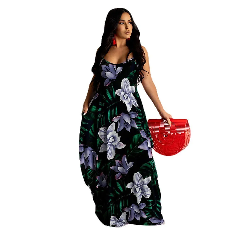 | Product Name | Summer Ladies Floral Print Loose Strap Dress Maxi dress |