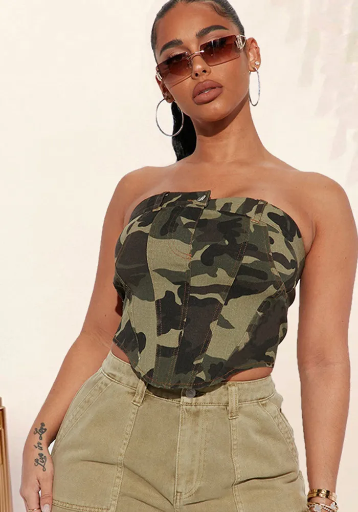 | Product Name | Summer Style Trend Low Back Irregular Camouflage Vest Top |