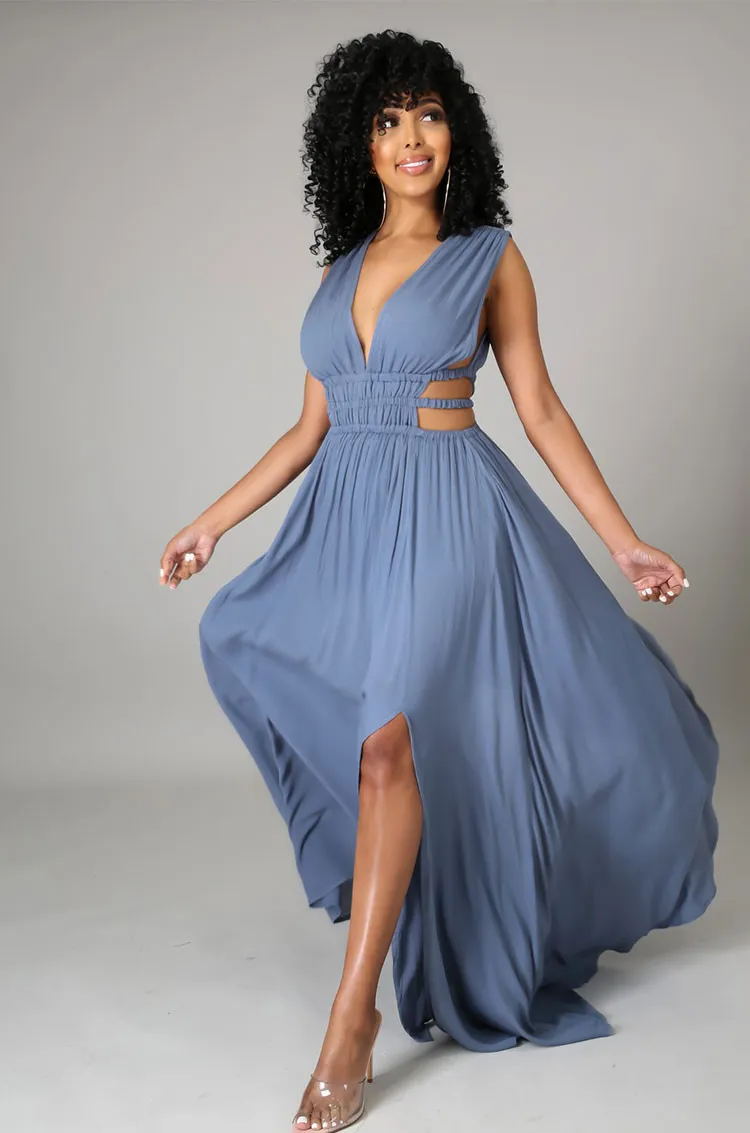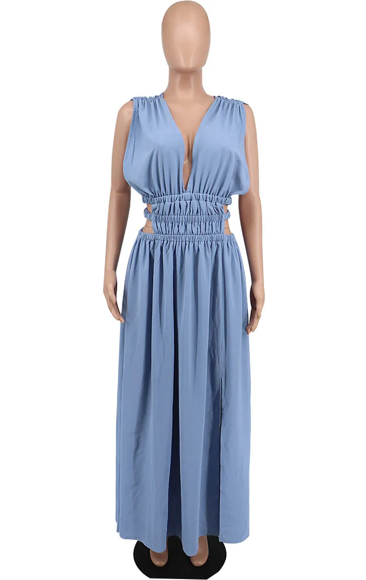 | Product Name | Summer Women Blue Sleeveless Deep-V Cut Out Side Slit Long Maxi Dress |