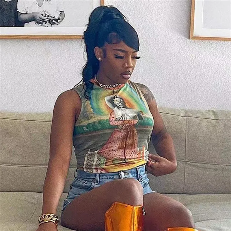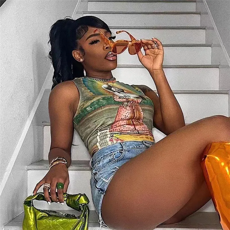 | Product Name | Summer Women’s Round Neck Sleeveless Contrasting Color Printing Slim Fit Crop Vest for Women |