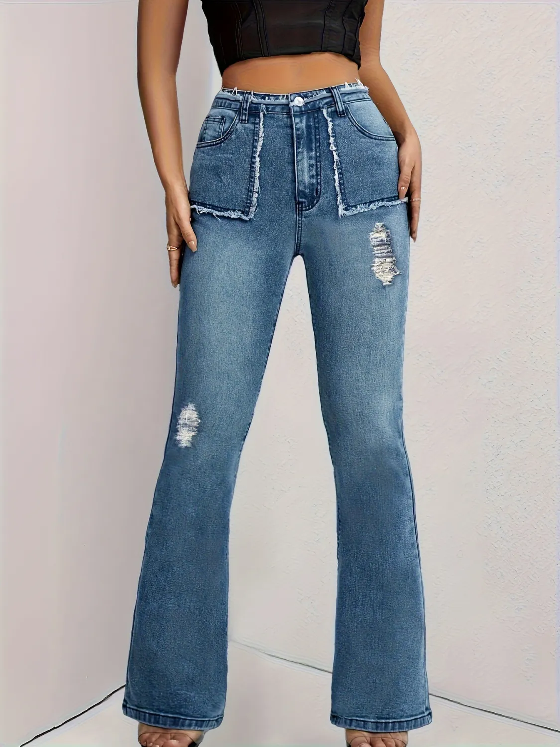 This Women American Contrast Color High Waist Patchwork Raw Edge Pockets Style Denim Pants Jeans Design Made Of Durable And Stretchy Jeans Fabric. It Is a Must-Have Item For Daily Life. Trendy Wholesale Jeans Is a Indispensable Item For Everyday Fashion. Women’s Jeans With High Waist Is a Must Have Trousers That Lengthening Your Leg Lines And Tightening The Excess Flesh Of Your Waist. Grab a Must Have High Waist Jeans Wholesale For Your Closet, Just Choose Different Matching Tops To Control Every Occasion Easily.