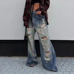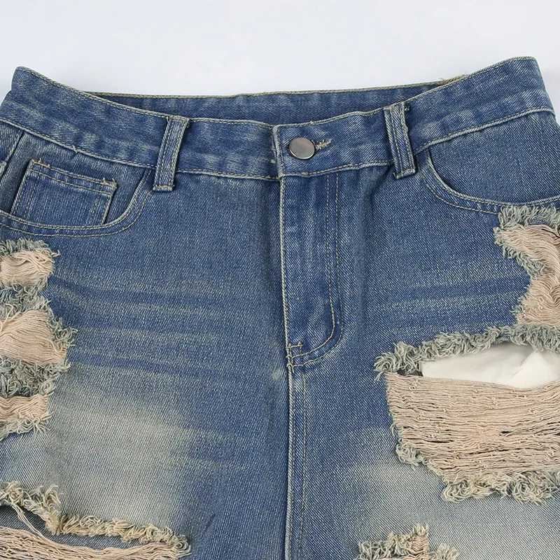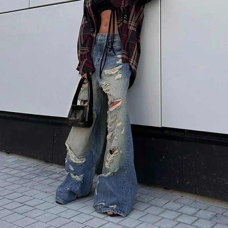 | Product Name | Women American Ripped Washed Loose Denim Straight Pants |