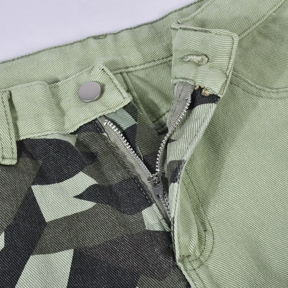 | Product Name | Women Camouflage Print Contrast Style Patch Pocket Denim Straight Leg Pants |