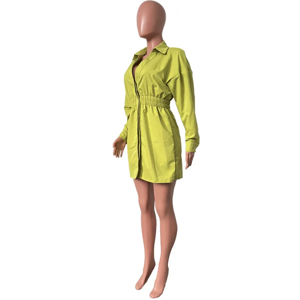 | Product Name | Women Chic Lapel Long Sleeve Solid Dress |