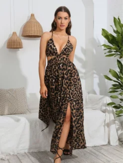 | Product Name | Women Leopard V-Neck Strap Maxi Dress |