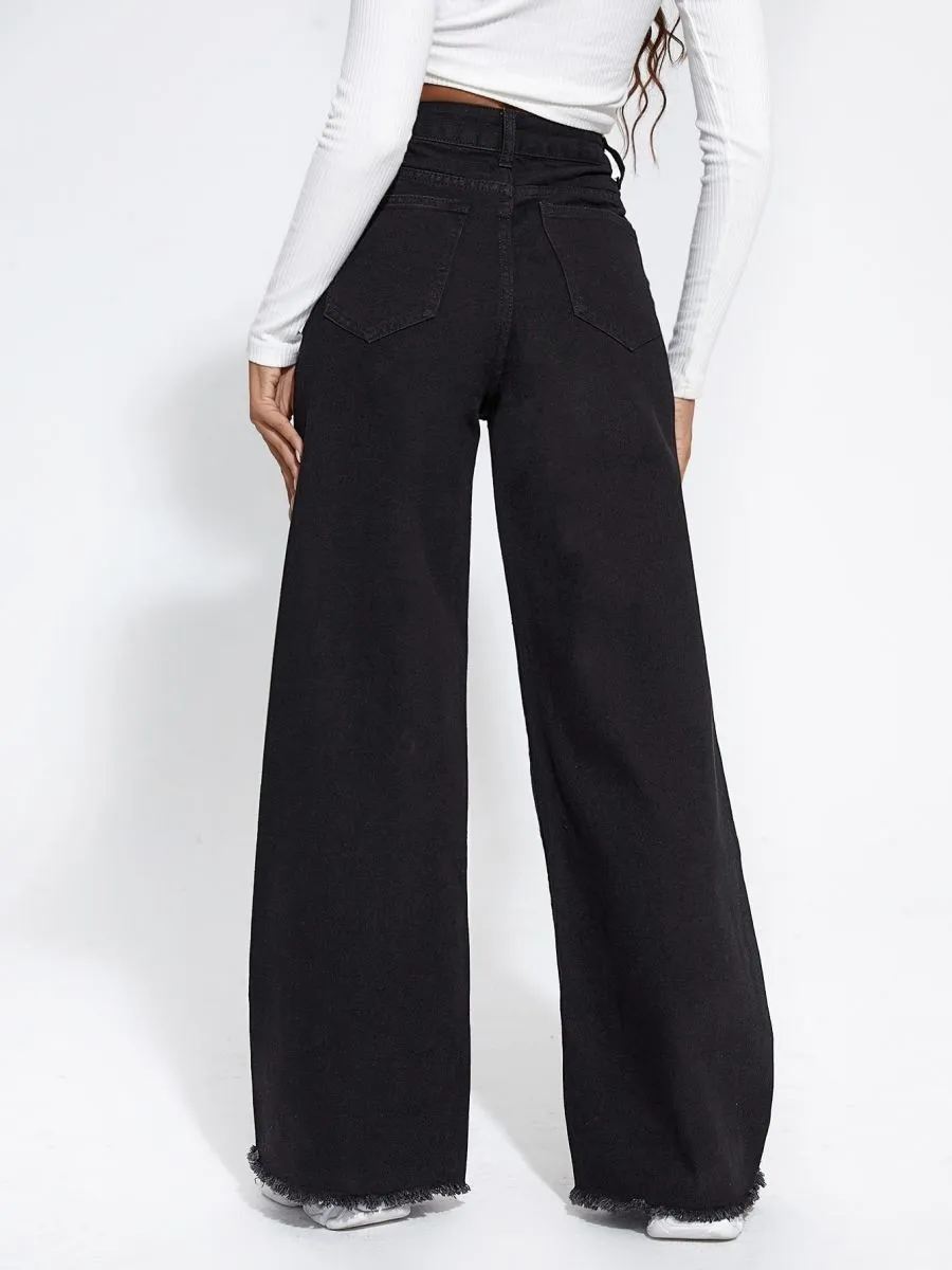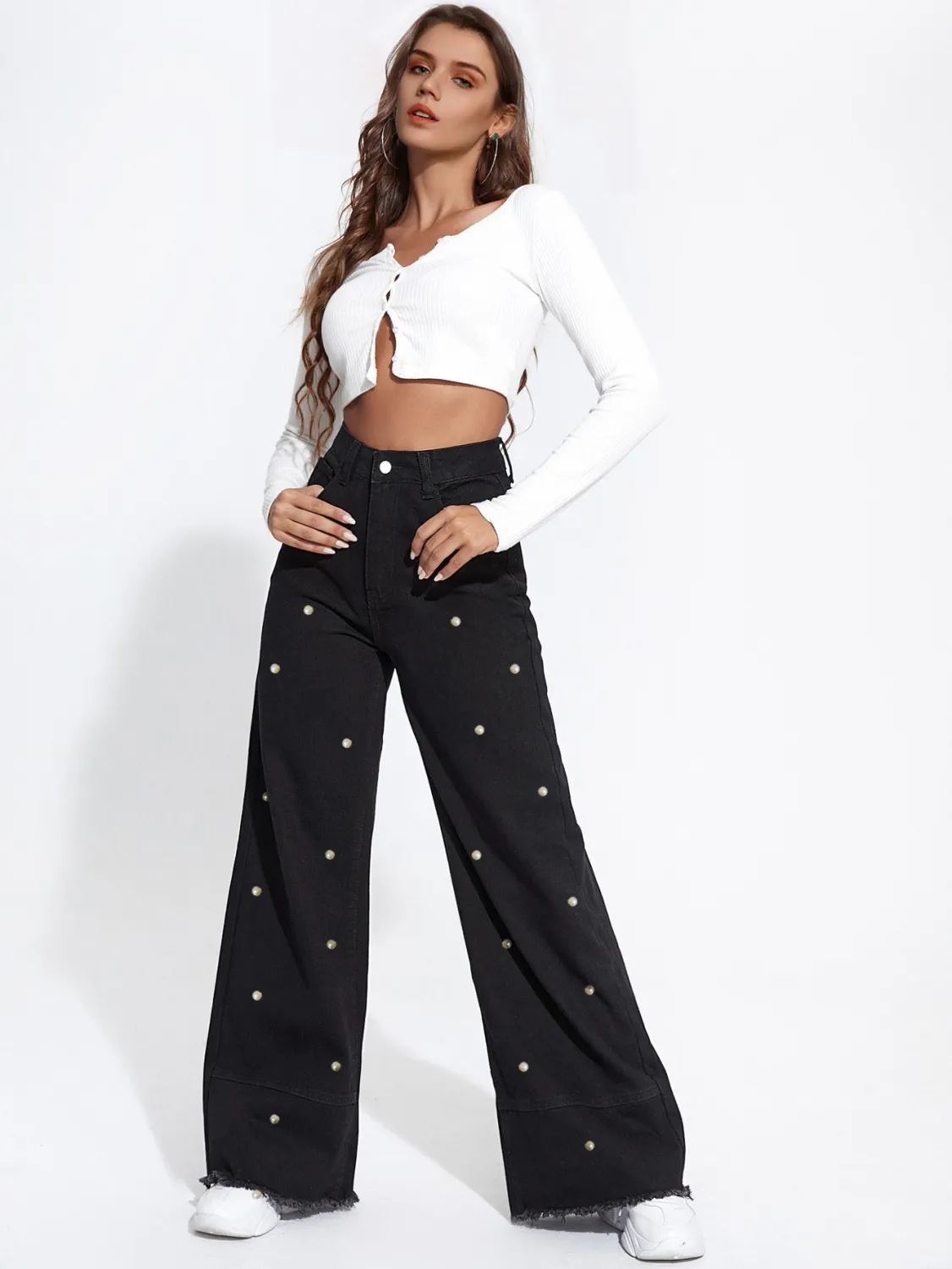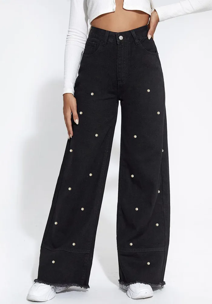 This Women Pearl Wide Leg Denim Pants Design Made Of Durable And Stretchy Jeans Fabric. It Is a Must-Have Item For Daily Life. Trendy Wholesale Jeans Is a Indispensable Item For Everyday Fashion. Womenâs Jeans With High Waist Is a Must Have Trousers That Lengthening Your Leg Lines And Tightening The Excess Flesh Of Your Waist. Grab a Must Have High Waist Jeans Wholesale For Your Closet, Just Choose Different Matching Tops To Control Every Occasion Easily.