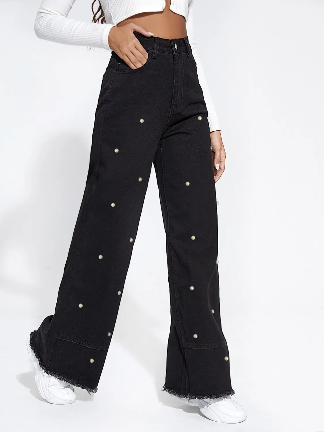 | Product Name | Women Pearl Wide Leg Denim Pants |