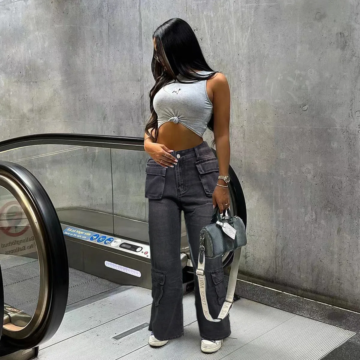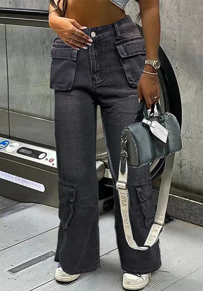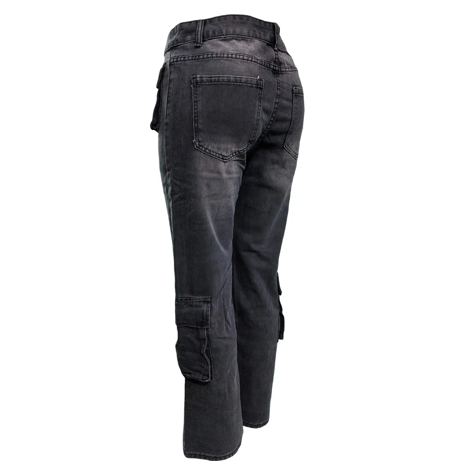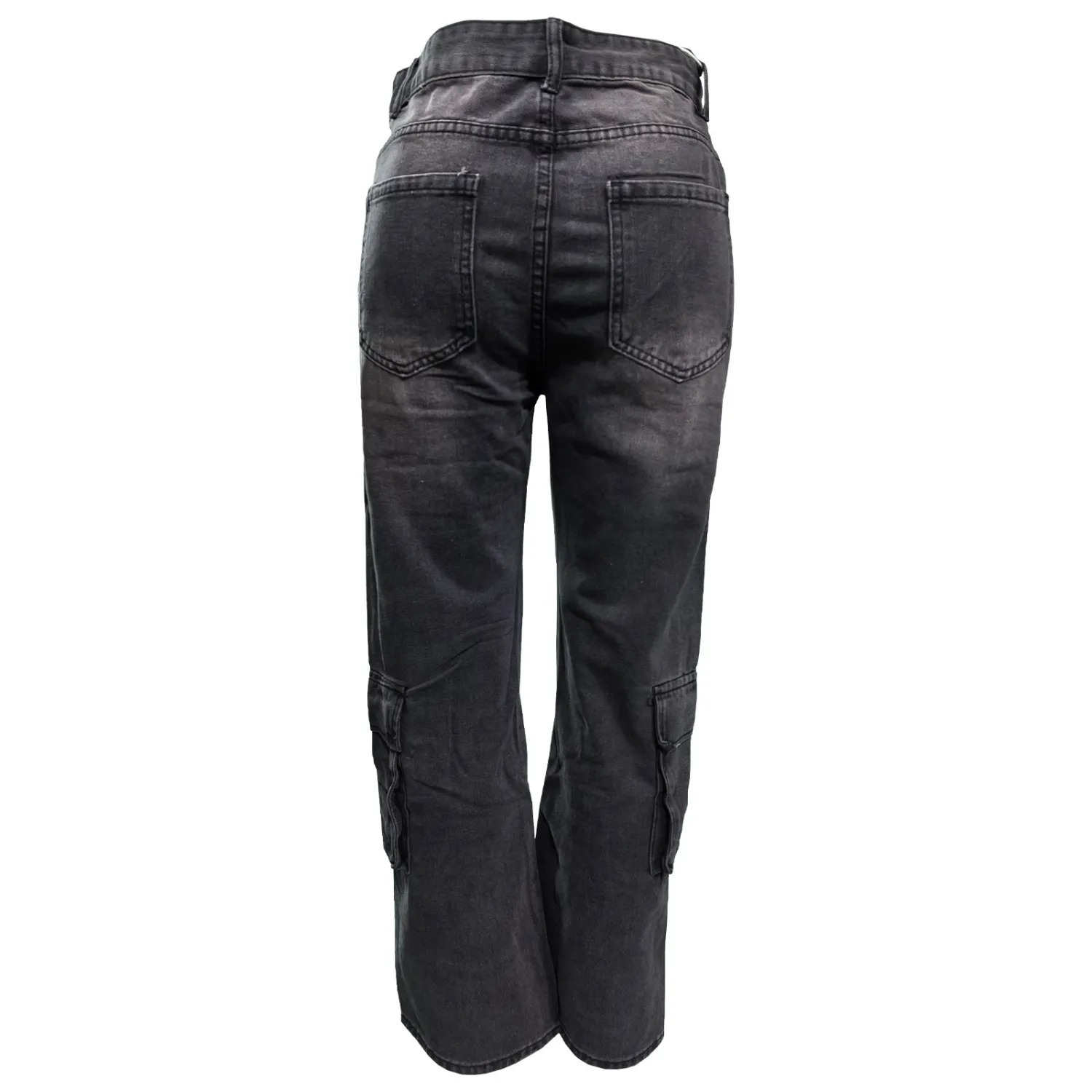 This Women Pocket Cargo Trousers Wide Leg Straight Washed Denim Pants Design Made Of Durable And Stretchy Jeans Fabric. It Is a Must-Have Item For Daily Life. Trendy Wholesale Jeans Is a Indispensable Item For Everyday Fashion. Women’s Jeans With High Waist Is a Must Have Trousers That Lengthening Your Leg Lines And Tightening The Excess Flesh Of Your Waist. Grab a Must Have High Waist Jeans Wholesale For Your Closet, Just Choose Different Matching Tops To Control Every Occasion Easily.