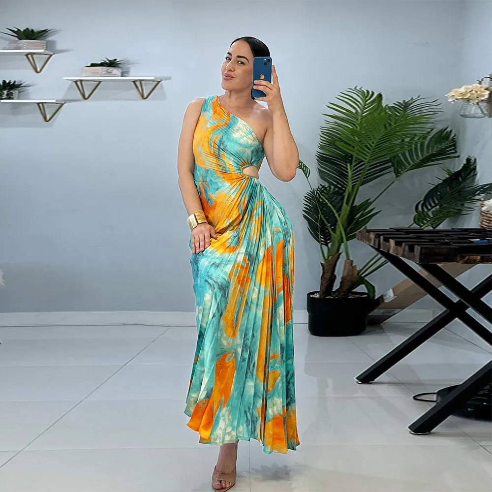 | Product Name | Women Printed Slash Shoulder Pleated Dress |