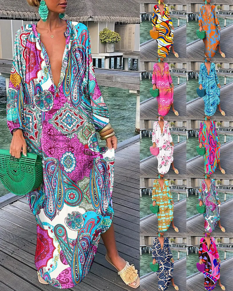 | Product Name | Women Printed V-Neck Long Sleeve Long Dress |