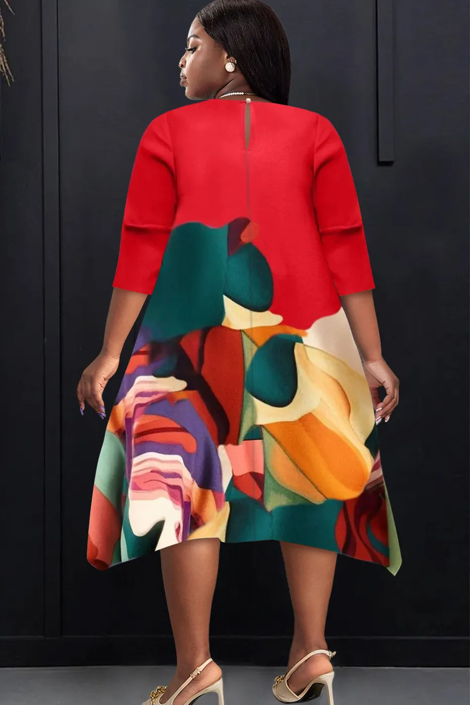 | Product Name | Women Round Neck Casual Contrast Print Dress |