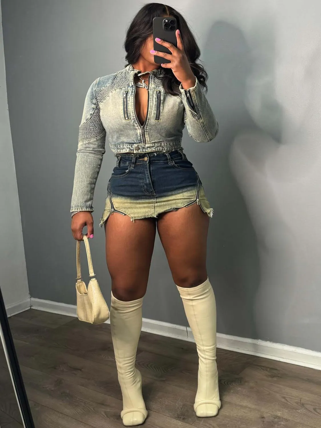 | Product Name | Women’s Distressed Sexy Zipper Stretch Denim Skirt |