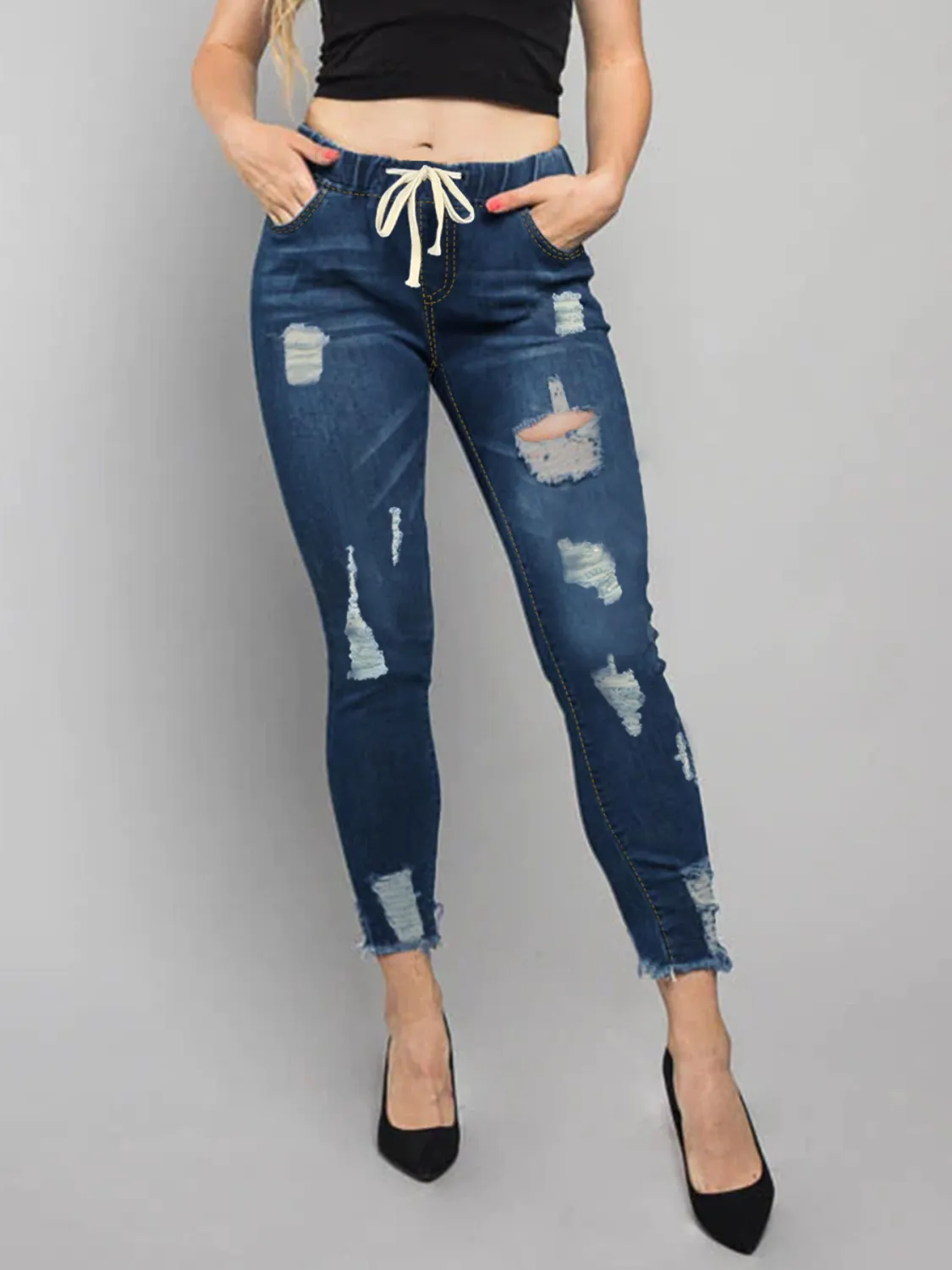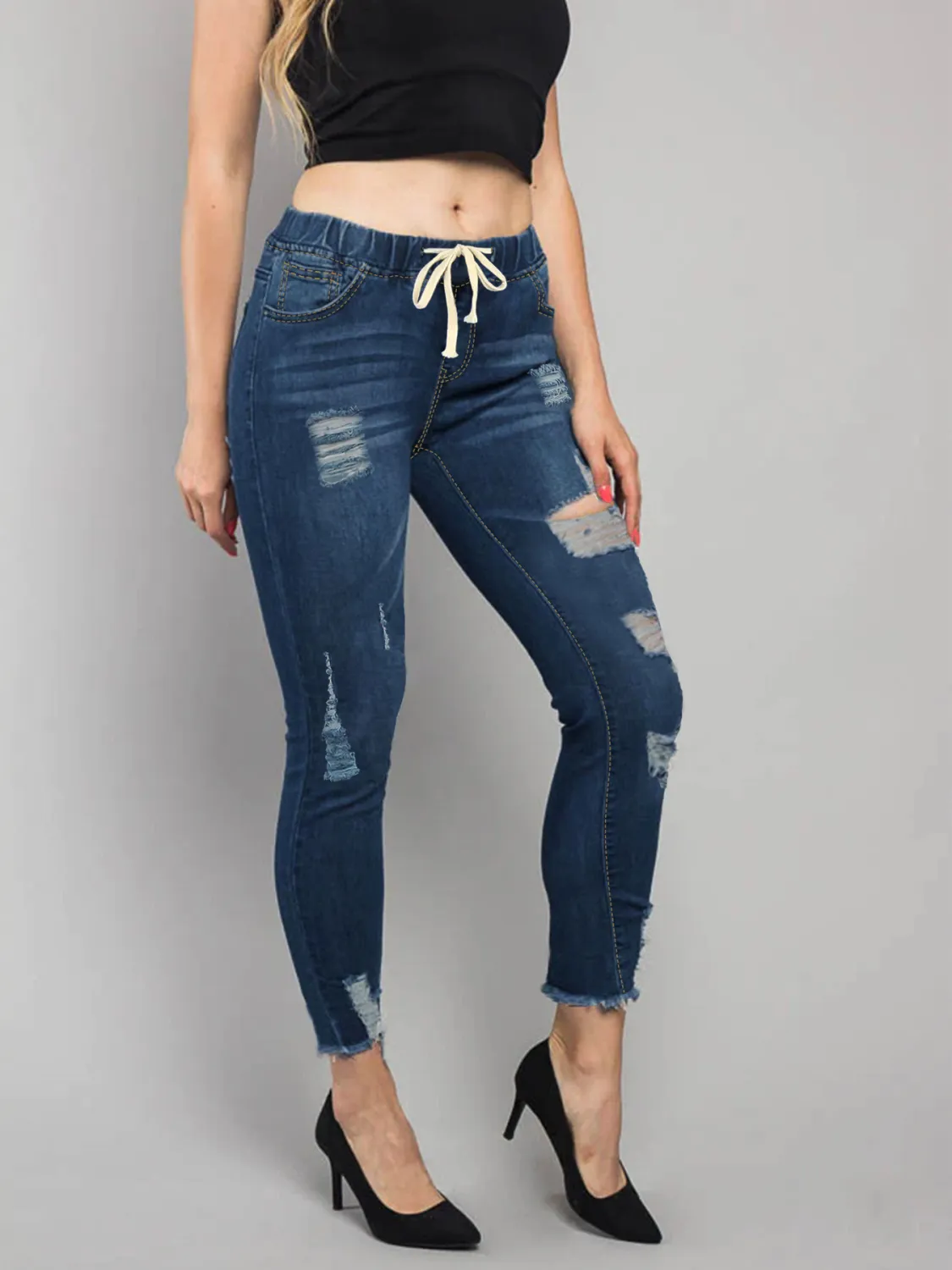 | Product Name | Women’s Elastic Waist Ripped Denim Pants Women’s Mid Rise Tie Slim Fit Stretch Tight Jeans |