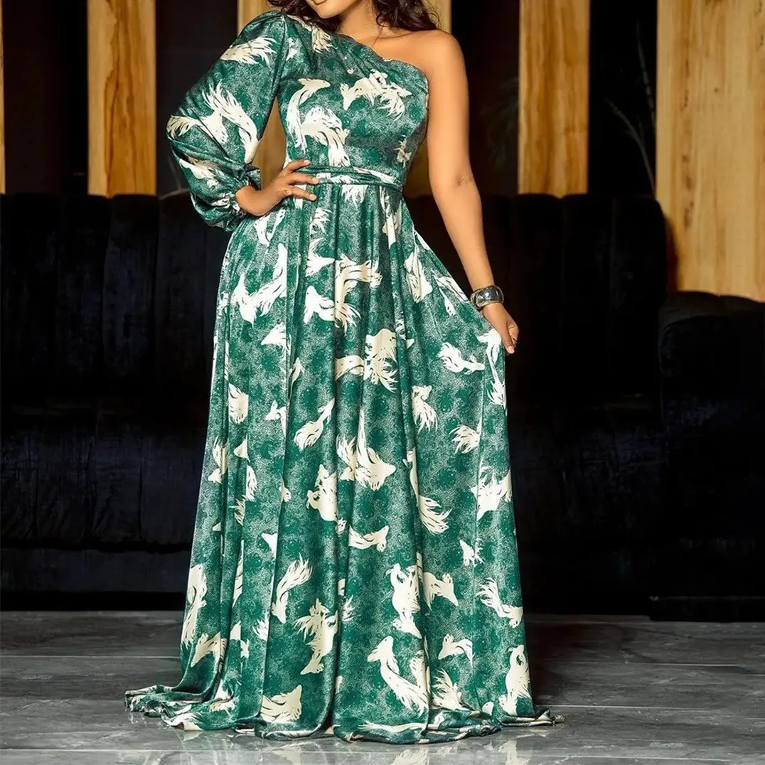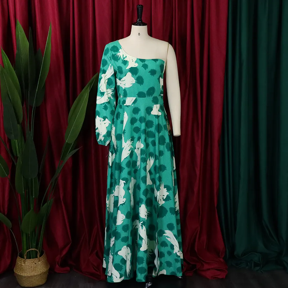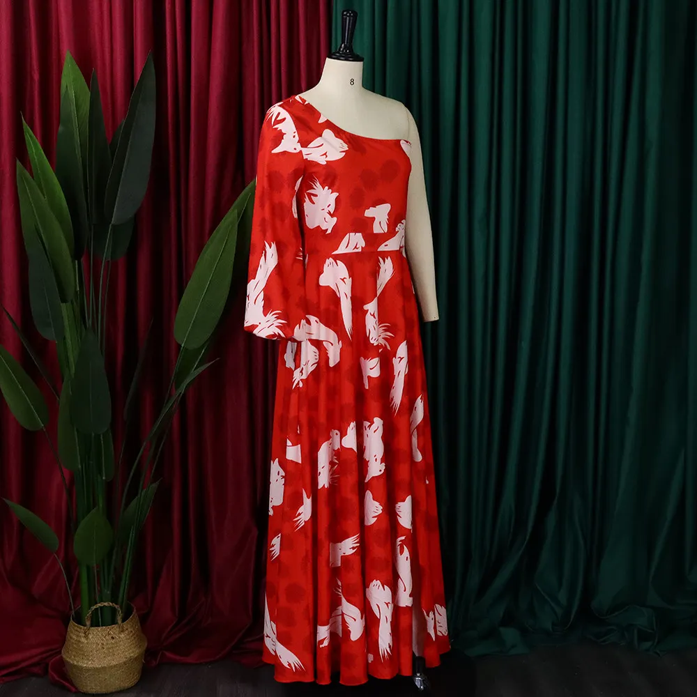 | Product Name | Women’s Fall Slash Shoulder Long Sleeve Print Plump Maxi Dress Dress |