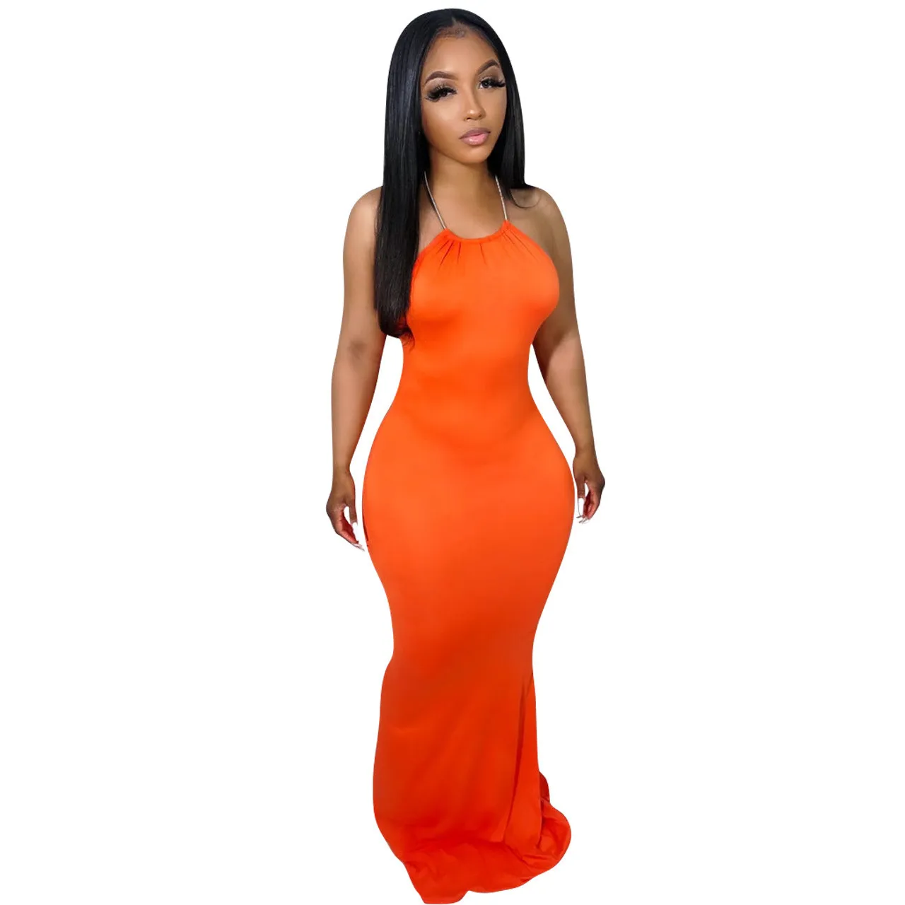 | Product Name | Women’S Fashion Solid Color Sexy Low Back Halter Neck Long Dress |