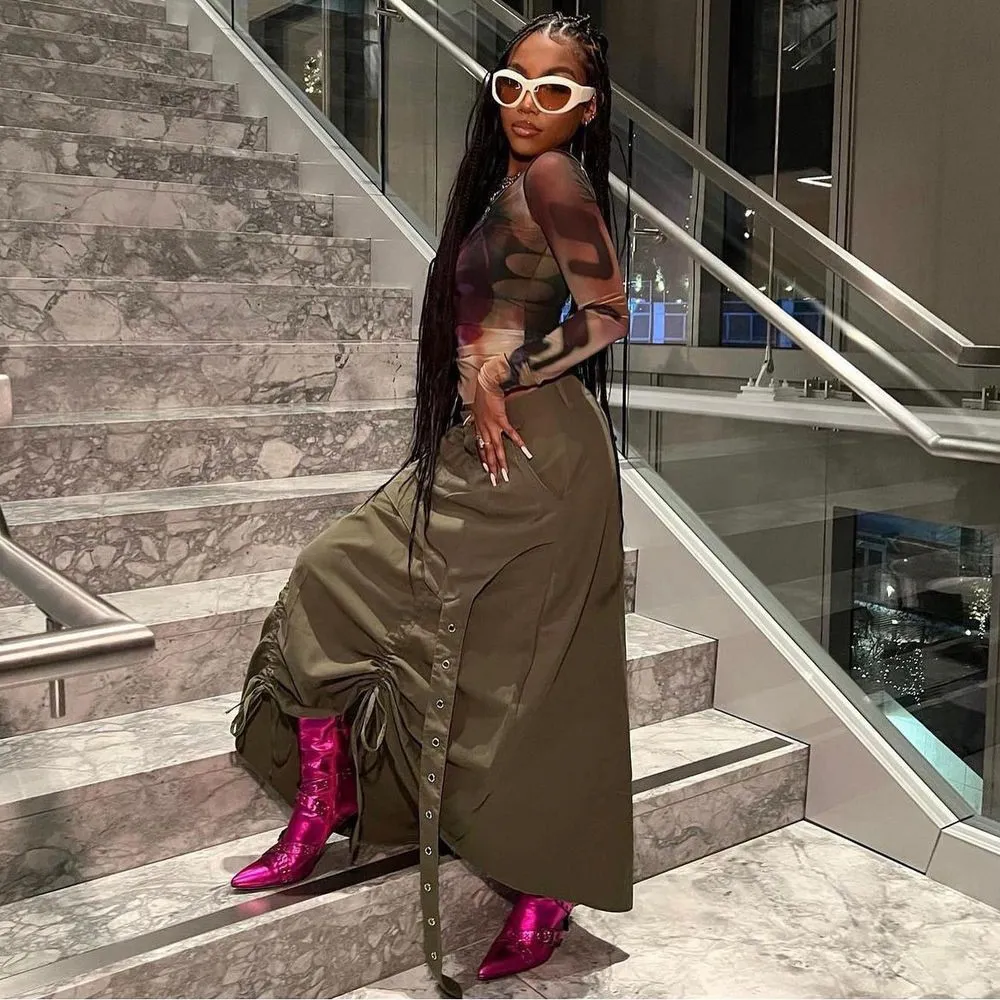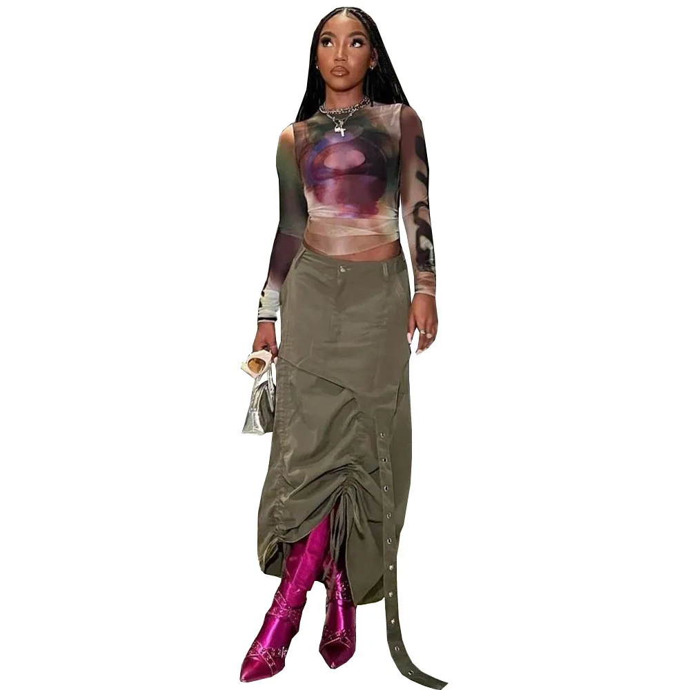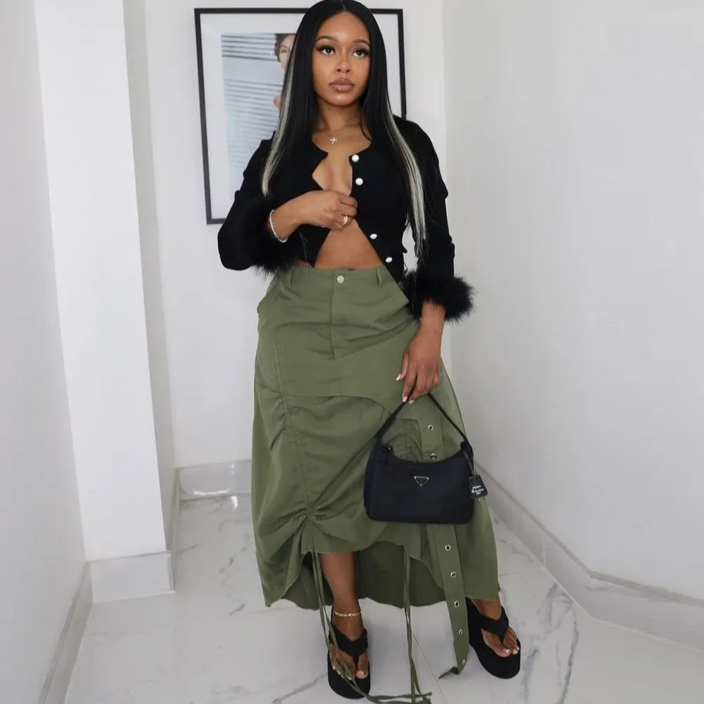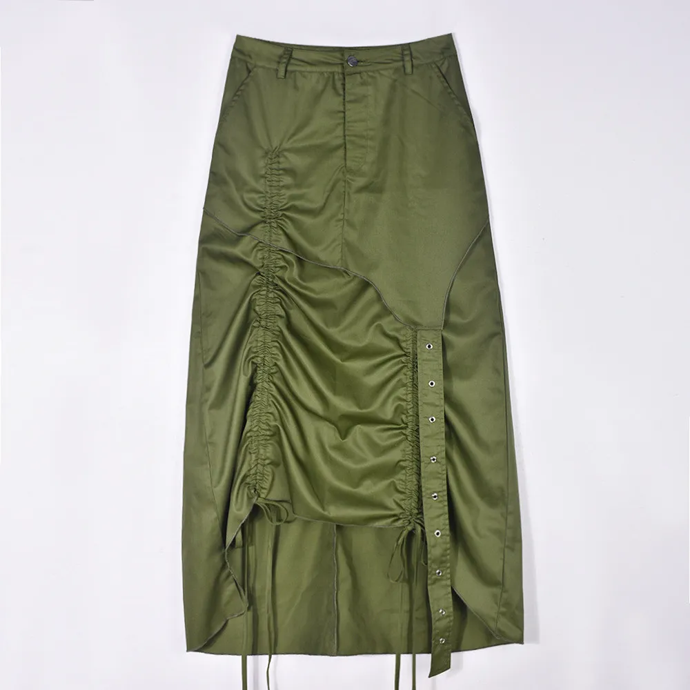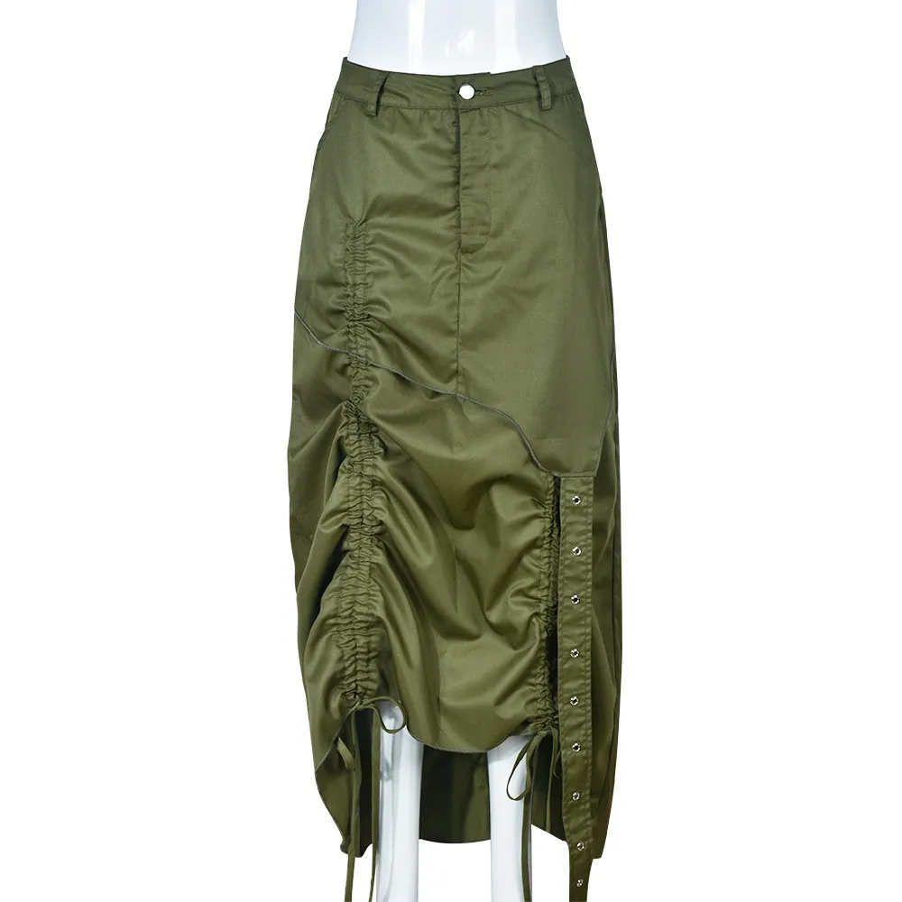 | Product Name | Women’s Fashion Style Pocket Slit Tassel Drawstring Pleated Skirt |