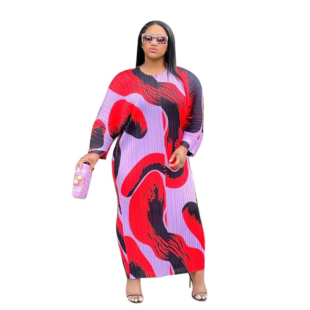| Product Name | Women’S Round Neck Bat Sleeves Print Pleated Maxi Dress |