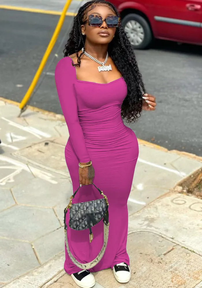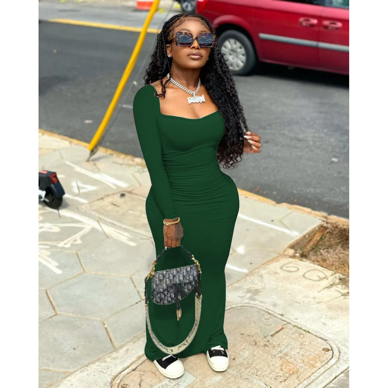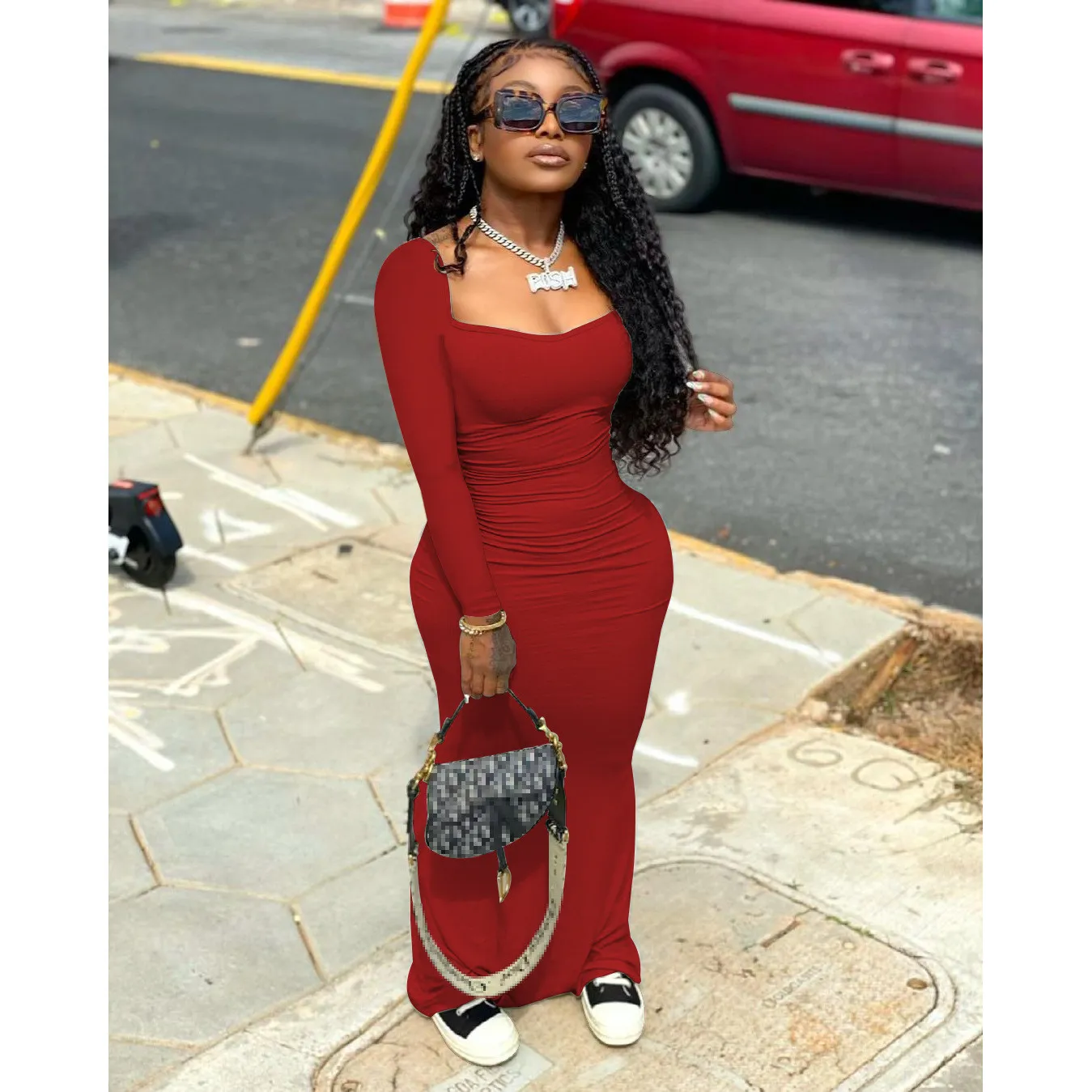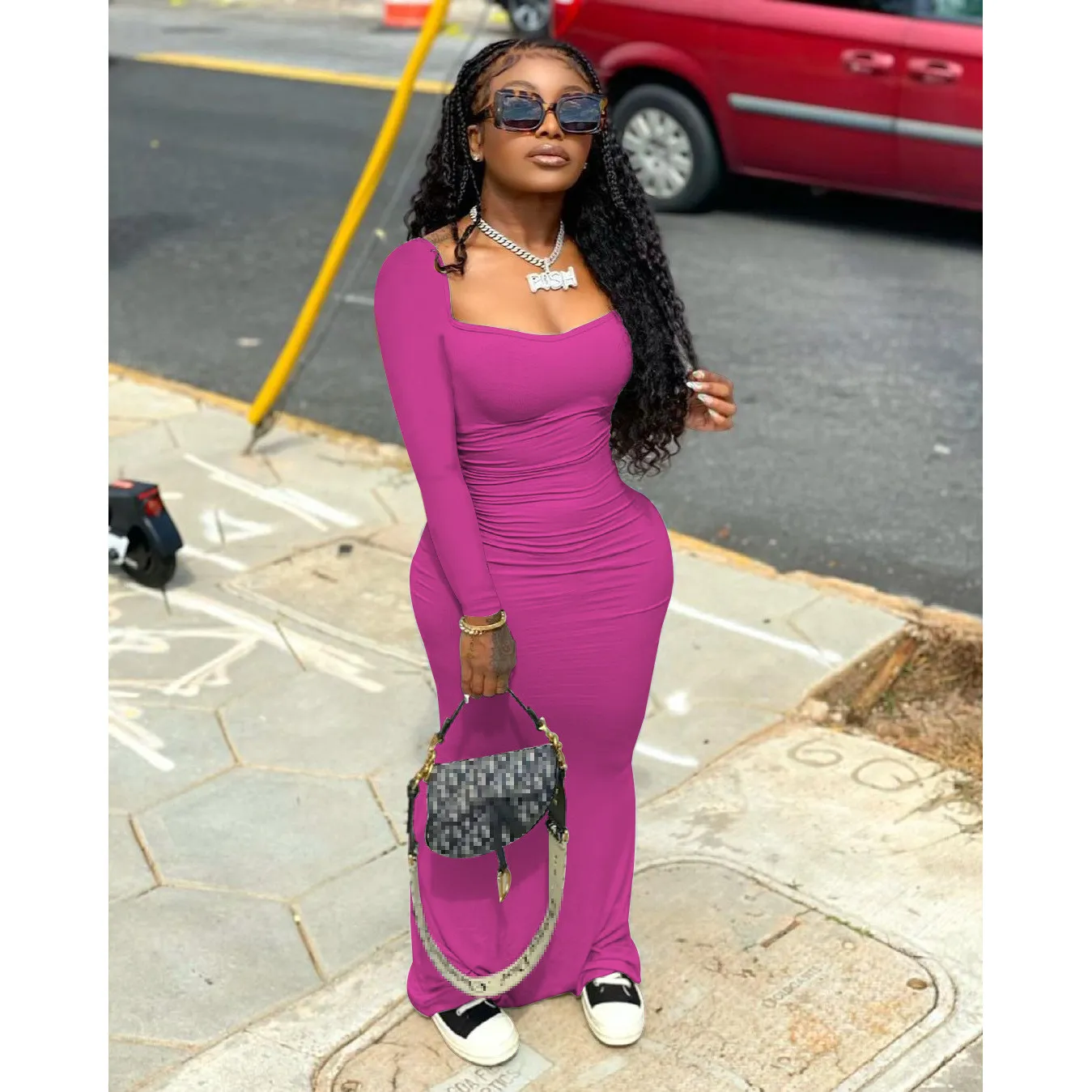 | Product Name | Women’S Sexy Tight Fitting Long Dress Solid Color Elastic Waist Pleated Dress |