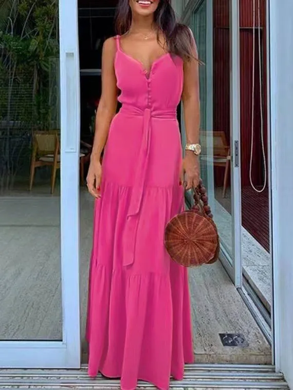 | Product Name | Women’S Slim Waist Solid Strap Maxi Dress |