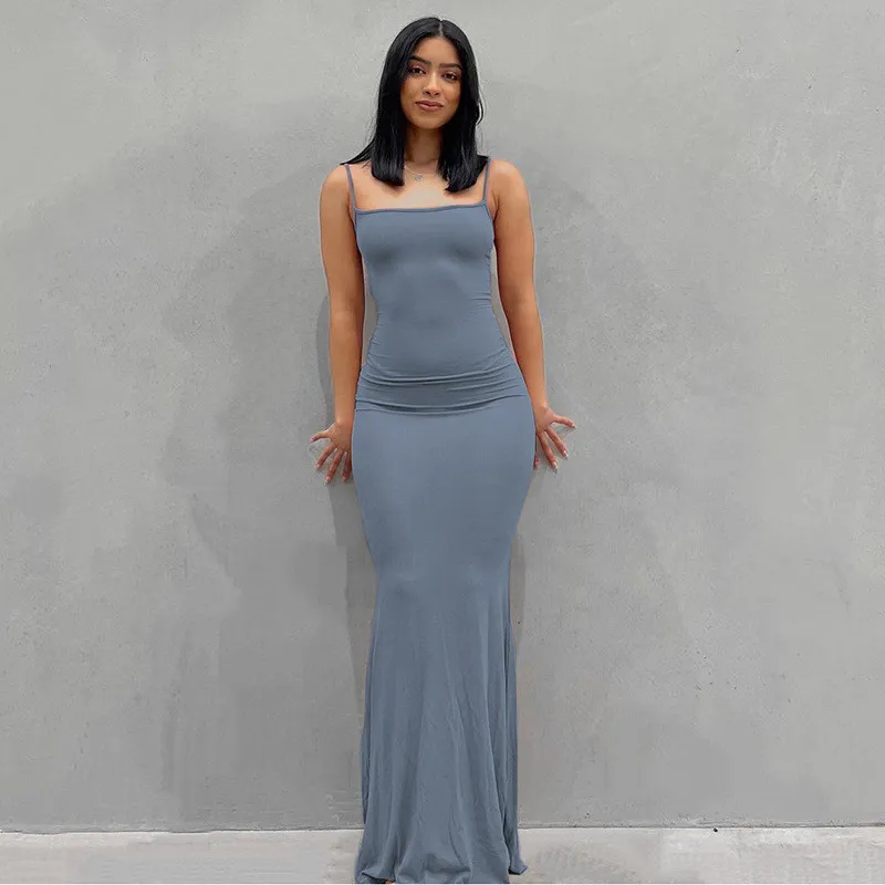 | Product Name | Women’S Solid Color Casual Slim Strap Long Home Dress |