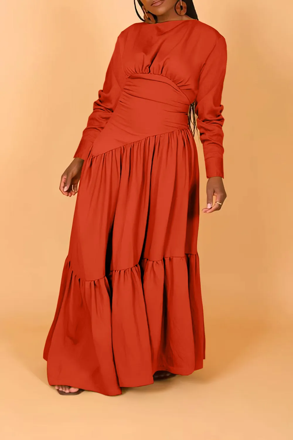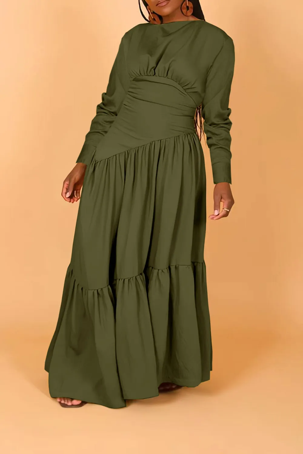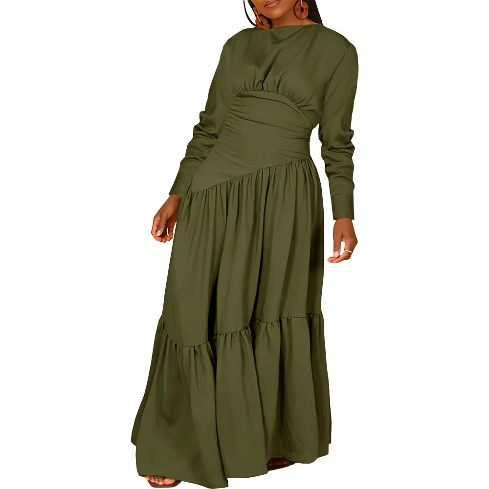 | Product Name | Women’s Solid Color Long-Sleeved Pleated Loose Dress |