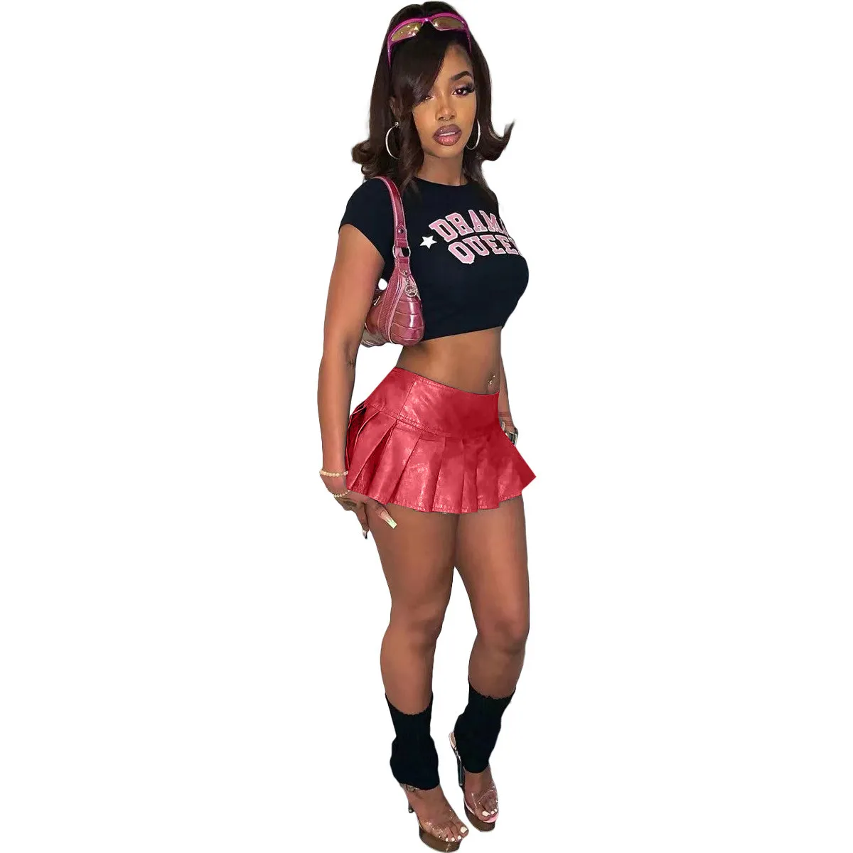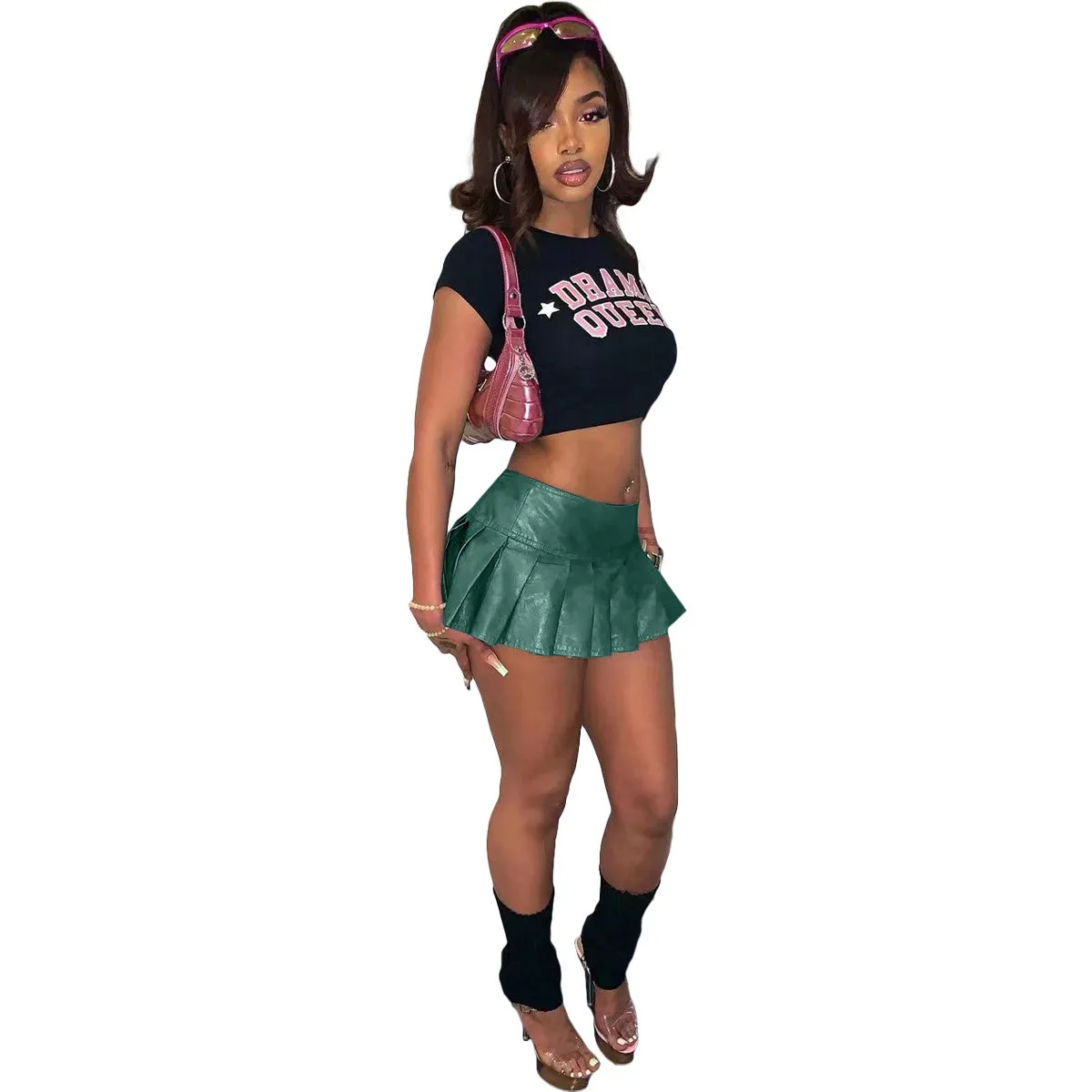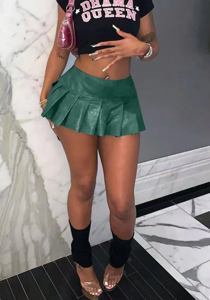 | Product Name | Women’s Solid Color Pu Leather Mini Pleated Skirt |
