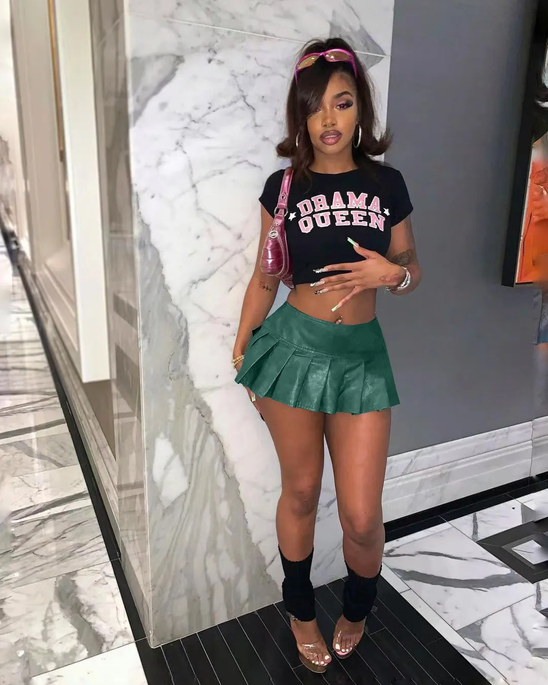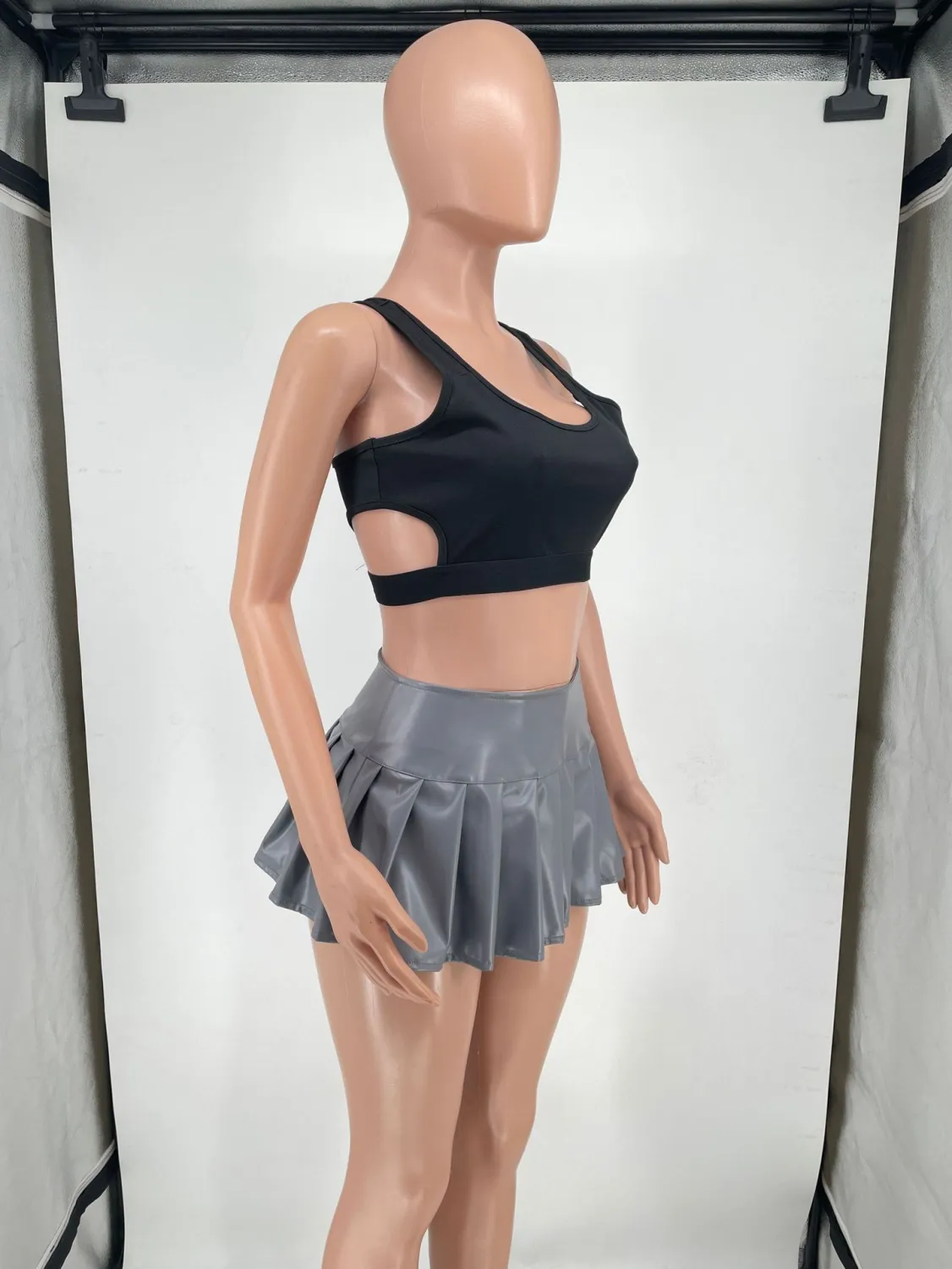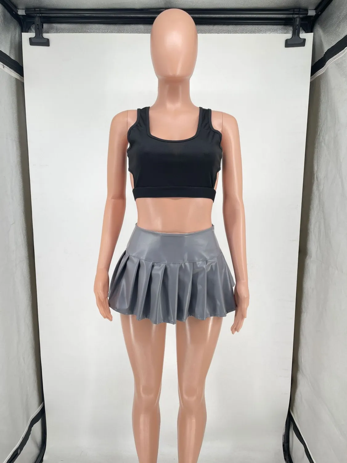 | Product Name | Women’s Solid Color Pu Leather Mini Pleated Skirt |