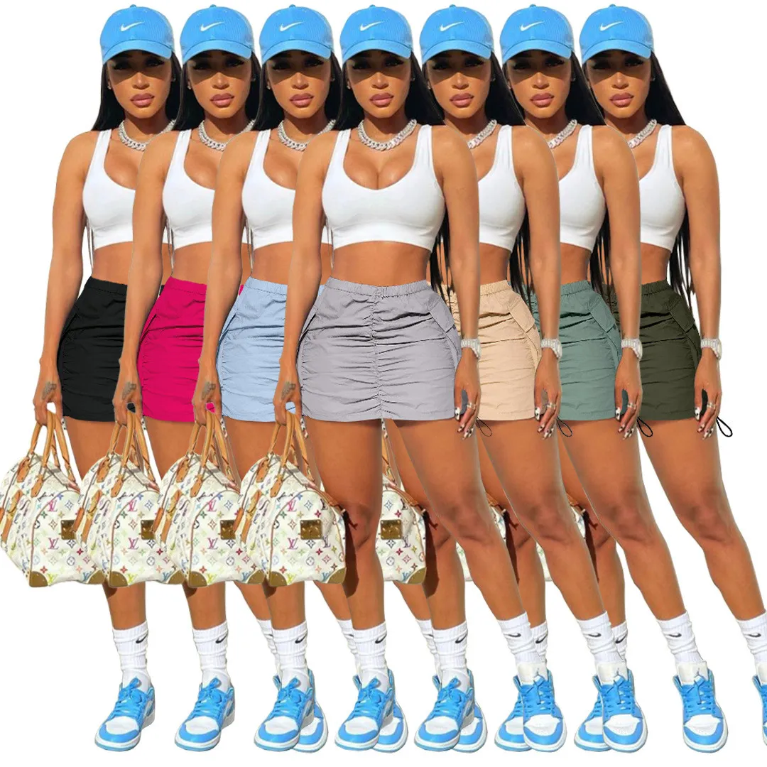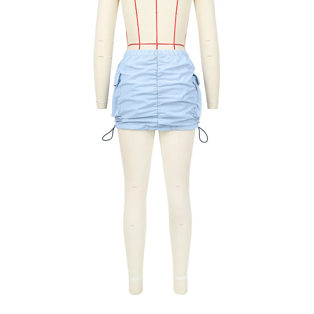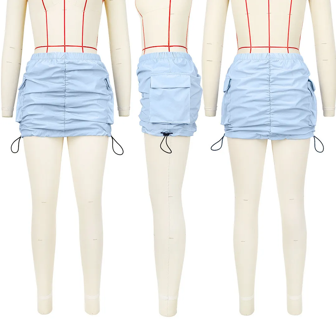 | Product Name | Women’s Solid Pleated Elastic Spring Closure Sport Accordion Pocket Cargo Skirt |