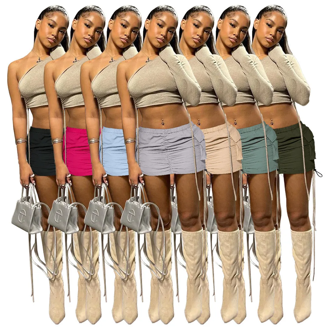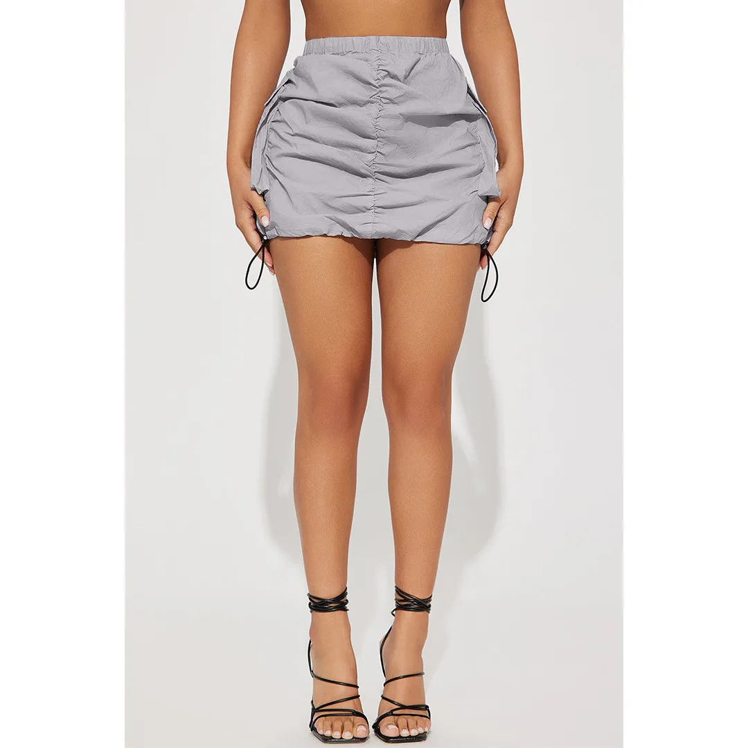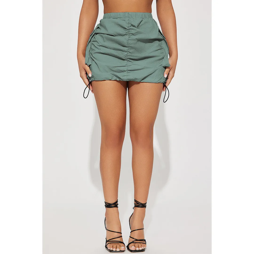 | Product Name | Women’s Solid Pleated Elastic Spring Closure Sport Accordion Pocket Cargo Skirt |