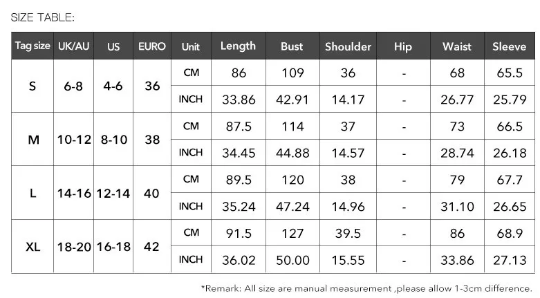 High Elasticity Fabric:Please add 0-0.5 CM from the garment size to body size.