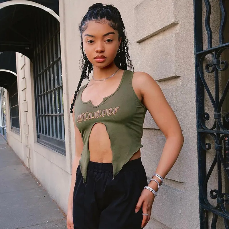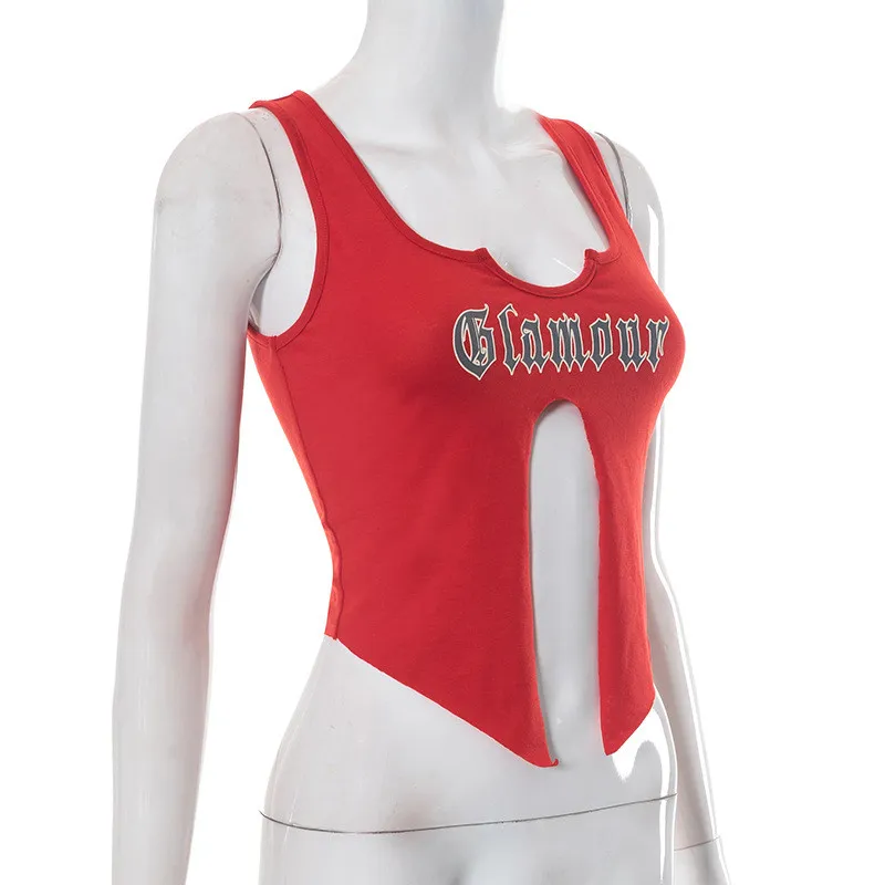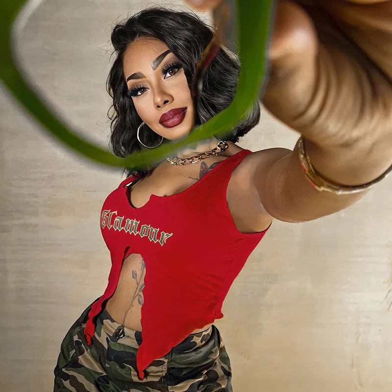| Product Name | Women’s summer printed street u-neck sleeveless slit t-shirt tops for women |